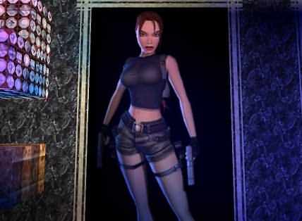 Nun mußt du auf die drei großen Blumen schießen, bis sie aufblühen (seltsam), wodurch sich die nächste Tür öffnet. Dort begegnest du einer Art Doppelgängerin von Lara, und rutschst dann in das Loch hinab, womit das Level beendet wäre...