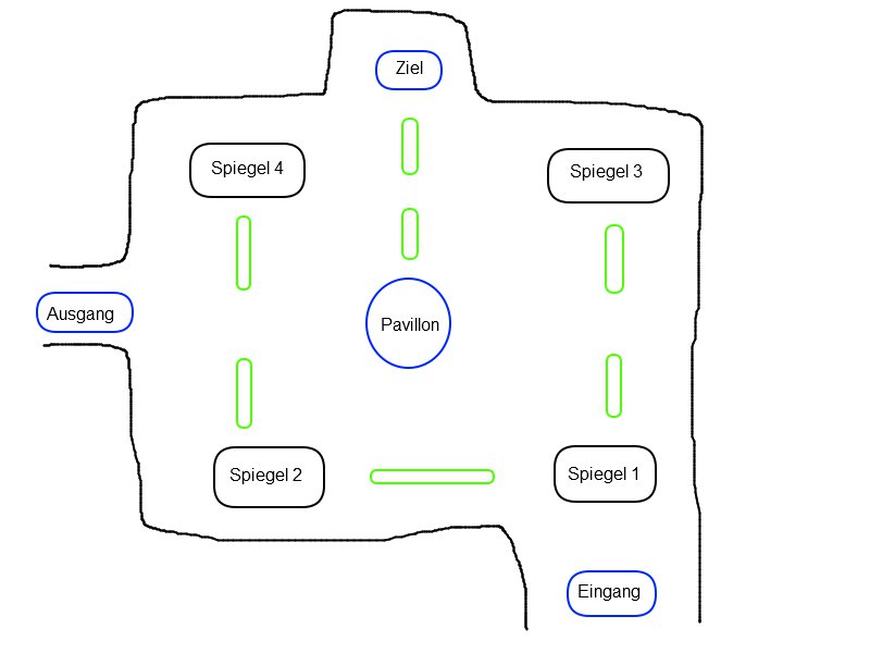 9. Drehe Spiegel 4 nach links, so daß er den letzten Balken vor dem "Ziel" dreht. Jetzt müßten die zwei Balken zwischen Pavillon und Ziel in gerader Linie sein.
