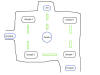 2. Drehe Spiegel 2 bzw. seinen Lichtstrahl durch die Mitte des zentralen Pavillons, so daß er den Balken diagonal gegenüber dreht, also in der anderen Ecke der Halle, und kehre zu Spiegel 1 zurück.