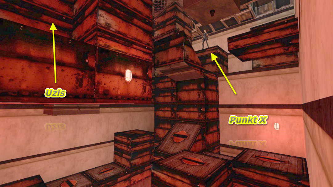 Die neuen TR 3 Remastered Erfolge, die man hier (in diesem Level) kriegen kann, stehen nun in der folgenden Lösung, die restlichen Erfolge stehen hier. F5 drücken zum Aktualisieren dieser Seite, die letzte Aktualisierung (Datum) steht rechts unten. Zeitspiel: Speedrun (Level möglichst schnell abschließen) Tomb Raider Remastered Steuerung. Worum geht's? Aldwych ist eine Station der Londoner U-Bahn, die 1994 geschlossen wurde. Du bist also in einer Art Geisterbahnhof, wo sich passenderweise der Club der Verdammten aufhält. Bis du die aber entdeckt hast, gibt es wie immer einiges zu tun, also ran... Erfolg: "Kopf-an-Kopf-Rennen" = Lauf zum Wartungsraum zurück, bevor es der Verdammte tut. Es gibt hier nur einen Erfolg, nämlich wenn man die linke Rolltreppe hinunter geht, siehe weiter unten... Zu Beginn des Levels rutschst du einige Rampen hinab und greifst sofort die nächste Kante, an der du dich hochziehst und Munition* findest. SG0 Lasse dich dann ins Wasser hinab, steige heraus und folge dem Weg. Rechts ist hinter einer Tür/Gitter (jetzt einschießen!) ein grüner Kristall 1, den du aber erst später holst. Betrete mit gezogenen Waffen die Schalterhalle und erlege einen Bösewicht (mit Medipack). In der Halle kletterst du auf das linke der vier Fahrkartenhäuschen, ziehst dich nach oben in die Öffnung und dort den schwarzen Block rechts von dir (mit den weißen Rohren) einmal heraus. In diesem Raum findest du an der anderen Wand an drei Stellen Munition und einen Bösewicht*, der in der anderen Ecke lauert. Klettere dann durch das Bodenloch in der Ecke hinab zu dem grünen Kristall und gehe wieder in die Schalterhalle. Steige wieder auf das linke Häuschen und diesmal an dem schwarzen Block mit den Rohren bis ganz oben, wo du dich auf der anderen Seite zweimal vorsichtig in das Häuschen hinabläßt. Hier findest du den Wartungsschlüssel, ein Medipack und einen Schalter, der dich wieder in die Halle bringt. Rechte Rolltreppe(n) Hier gibt es zwei Ausgänge mit Rolltreppen (links und rechts). Benutze den rechten Ausgang und gehe hinunter. Springe dort mit Anlauf über den Abgrund, ziehe sofort die Waffen und erlege in der Halle einen Hund mit Herrchen. Öffne am anderen Ende des Bahnsteigs mit dem Schlüssel die Tür, sammle dahinter Munition und ein Medipack und drücke den Schalter. Wieder draußen findest du am Anfang des Bahnsteigs einen "alten Penny" (Münze). Kehre zu dem Erdloch zurück, über das du zum Bahnsteig gesprungen bist und hänge dich an die braune Schräge über den Schienen (in Richtung Gleis). Lasse los und laufe hurtig (ein Zug kommt!) geradeaus und nach rechts in den Seitentunnel, wo du sofort die Waffen ziehst und zwei Schläger erlegst. Kistenraum SG1 In dem dortigen Kistenraum findest du am Boden ein Medipack und hinter einer Kiste weiter oben einen grünen Kristall 2. Klettere von dem Kristall wieder zurück auf die Kiste, erlege einen Hund und springe mit Anlauf nach links auf den Stapel an der anderen Wand. Hier stellst du dich mitten auf die Kiste neben dem schrägen Brett, und zwar mit Blick auf den Holzpfeiler mit der Kletterwand. Mache einen Seitwärtssalto auf das schräge Brett, springe sofort nach vorn an die Kletterwand und halte dich fest (etwas schwierig, aber es geht). Klettere bis fast ganz oben und drücke "Alt" = Sprung, um auf dem Vorsprung hinter dir zu landen. Drehe dich um und springe schießend auf der Stelle, um einen Schurken anzulocken und zu erlegen. Er hat ein Medipack dabei. Klettere dann auf den Block an der Wand, das ist Punkt X.