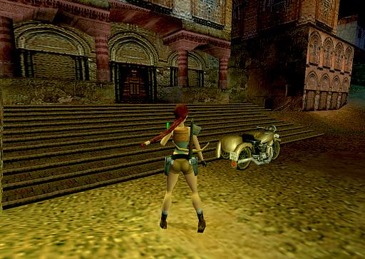 SG5 (761) - Die zwei MG sind beseitigt! Gehe nach rechts zu der Tür, öffne sie, und ziehe den toten Schützen weg. Danach fährst du wieder zurück und hinaus und gleich nach links, wo du einen Block findest und besteigst. Krieche in die Nische und lasse dich hinab in einen Raum mit Medipack und Hebel, den du betätigst. Dieser öffnet das Gitter bei dem toten Soldaten von vorhin. Ziehe dich dort durch die Öffnung nach oben und weiter hinauf zu dem toten Soldaten von vorhin. Hier springst du mit Griff zu der Nische und betätigst weiter oben einen weiteren Hebel. Kehre nun zu deinem Motorrad zurück und fahre zum Beginn dieses Levels, und zwar bis hinter das nun geöffnete Tor. Dort steigst du ab und gehst ein paar Schritte die Treppe hinab, um einen Schützen zu erlegen. Unten findest du in einer Nische Pfeile. Danach fährst du mit dem Motorrad die Treppen hinauf und oben über die kleine Sprungschanze in die Öffnung gegenüber (was etwas Übung erfordert). SG6 Steige dort ab und gehe hinauf in die Nische mit dem Hebel (drücken), wobei dir allerdings Fledermäuse begegnen. Erfolg: "Minimaler Schaden" = Zerstöre nicht den Helikopter auf dem Dach. Also man darf nicht auf das Benzinfaß schießen! Das ist an sich kein Problem, weil das Benzinfaß wäre eigentlich nur dazu da, daß die zwei MG da oben kaputt gehen, aber die kann man ja auch schon von unten aus beseitigen, siehe meine Lösung weiter oben. Aber der Erfolg ploppt erst im Level Zitadelle auf! Oder irgendwo da in der Gegend... Fahre nun mit dem Motorrad weiter hinauf und über die Rampe. Dort steigst du ab und gehst eine Treppe hinunter zu dem blauen Block, auf den du steigst und so einen Gang erreichst. Danach springst du mit Anlauf/Griff zu dem Gebäude gegenüber und holst neben dem MG (= Nummer 4) Munition. Dann geht es weiter durch die Tür. Danach schießt du gezielt auf das Benzinfaß beim Hubschrauber und springst mit Anlauf/Griff dorthin. Springe über den nächsten Abgrund (wo der Hubschrauber war) und hole links hinten ein Medipack, dort ist auch ein Hebel, den du betätigst. Anschließend kehrst du zurück zum Tor am Beginn des Levels und gehst hinauf zu einem Motorrad. Fahre dann die Treppe hinauf, biege oben rechts ab und fahre hinunter. Nun fährst du nach links und anschließend nach rechts, bis du ein geöffnetes Tor erreichst, hinter dem du die Rampe hinauf fährst... SG7 (das habe ich jetzt vielleicht etwas mißverständlich ausgedrückt, jedenfalls mußt du zu der Ecke, wo du den toten Soldaten weggezogen hast, dort ist jetzt ein Tor offen) Gegenstände (u.a.): Revolver, Laser, Geheimnis 1. Anmerkung: es gibt hier noch ein zweites Geheimnis, siehe Anmerkung im Level 28: Tulun-Moschee 2. Statistik: Sammelgegenstände: 20 mit dem 2. Geheimnis! (gesamt: 422), Geheimnisse: 1/2 (gesamt: 55/56), Gefäße: 0* (gesamt: 136) - gesamt heißt: vom Spielbeginn bis zum Ende dieses Levels (* sicherheitshalber sollte man das Gefäß mit den Heuschrecken da beim Pendel nachher noch abschießen, obwohl es nicht zählt) Remastered Version Savegames kann man z.B. bei Stella herunterladen, oder bei mir im Forum, Und hier ist ein Savegame-Editor für die Remastered Version! Achtung! Folgende Savegames sind nur für das originale (alte) Spiel! Download: savegame.0 gehe weiter, um dieses Level zu beginnen. Mit der rechten Maustaste anklicken, speichern unter... wählen und in C - Programme - Core Design - Tomb Raider The last Revelation speichern (alte Version mit 10 Speicherplätzen). Download: Savegames für die neue Version von TR4 mit 15 Speicherplätzen als ZIP-Datei, also vorher entzippen. Download: gesammelte Savegames = ZIP-Datei von Level 24 und 25 (neue Version mit 15 Speicherplätzen). Anleitung Text ist enthalten! Und hier ist ein passender Savegame-Editor. Also da sind jetzt etwas mehr Savegames (SG1 usw.) für dieses Level enthalten, falls du an einer schweren Stelle nicht weiter kommst. Bitte die darin enthaltene Anleitung lesen! Generelle sonstige Fragen/Antworten zu diesem ganzen Savegame-Zeug findest du hier. Speicherort normal siehe hier. Speicherort Steam-Version: C:\Program Files (x86) \Steam \steamapps \common \Tomb Raider (IV) The Last Revelation- GOG-Version: C \ GOG Games \ Tomb Raider 4 - Wenn du dort deine eigenen Savegames (savegame.0 usw.) siehst, bist du auch im richtigen Ordner!
