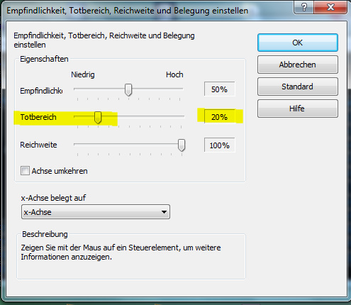Folgen Sie bitte genau den Bildschirmanweisungen. Wichtiger Nachtrag: Nach meinen bisherigen Erkenntnissen ist es so, daß bei TR5 die Steuerung mit Gamepads und Joysticks so empfindlich reagiert, daß bereits kleinste Bewegungen am Joystick - Gamepad bewirken, daß Lara sich bewegt. Oder anders ausgedrückt: so gut wie alle Steuergeräte haben eine derart ungenaue Null- bzw. Mittelsstellung, daß Lara bereits losläuft oder sich dreht, wenn man gar nichts macht. Und leider ist nach meinen bisherigen Erfahrungen die einzige Lösung, einen Joystick oder Gamepad zu verwenden, wo man die Empfindlichkeit verkleinern kann. Und das sind nach meinem Wissen nur Logitech Joysticks und Gamepads. Dazu muß man den Logitech Profiler starten, also die Software zur Einstellung des Joysticks, die bei allen Logitech Steuergeräten mitgeliefert wird, und dann bei der X- und Y-Achse in den Eigenschaften den Totbereich auf mindestens auf 20% herauf setzen. Dann läßt sich Lara einwandfrei steuern! Noch ein Nachtrag (2015): den Logitech Profiler (Wingman) gibt es nicht mehr im Internet zum Download, er wurde eingestellt. Daher läuft er auch nicht auf (neuen) 64-Bit Systemen. Über Google und/oder die Wayback-Machine kann man ihn eventuell noch irgendwo kriegen > www.wingmanteam.com (in die Wayback-Machine eingeben). Noch ein Nachtrag (2017): diese benötigte "Logitech Gaming Software 5... bis 8... x64 Bit" kriegt man noch hier: Softpedia, oder du schreibst mir, und ich schicke es dir zu, es läuft auch auf Windows 10! Also falls dein Windows in 64 Bit ist! Dann brauchst du natürlich die Logitech Version x64!