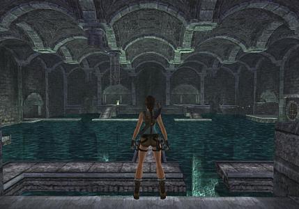 Worum geht's? Hier muß sich Lara erst mal mit dem Wasserstand in der Halle sowie einem Floß beschäftigen, um das Grab des besagten Tihocan zu erreichen, aber dort wartet eine böse Überraschung in Form von zwei Zentauren auf dich, und ich kann dir gleich sagen, daß es sich hier um eine der schwersten Stellen überhaupt handelt... Anmerkung 2014: ich spiele es gerade auf der XBox 360, und für mich als XBox-Neuling ist bis jetzt noch alles recht gut zu schaffen gewesen, inklusive aller Artefakte und Reliquien. Artefakte / Reliquien: 2 / 0 Tihocan, die Erste Tauche weiter (mit mehrmals Interaktion (Handlungstaste E) drücken: beschleunigen), bis du einen Lichtstrahl siehst, hier kannst du oben Luft holen, dann tauchst du in den anderen Gang und gehst an Land = KP. Nun schiebst du die Kiste weiter und zum Hebel, diesen ziehen und hinunter lassen in die große Halle = KP. Gleich rechts am Eingang der Halle springst du an die Stange, schwingst weiter und wirfst deinen Haken aus. Starte einen Mauerlauf und springe rückwärts auf den Steg ab zu Mini-MP-Munition. Es kann auch sein, daß du aus Versehen statt dem Steg an die nächste Mauerkante abspringst, hier kannst du dich zu Kal. 50 Munition hinunter lassen, und auf den besagten Steg hinauf springen. Springe dann hinunter ins Wasser, wo du schnell links an Land gehst, und die zwei Goldfische beseitigst. Hinweis: hier unten am Boden der Halle kannst du einen Krokogator aufstöbern und beseitigen, sowie zwei Medipacks absahnen. Hier gehst du die kleine Schräge in der Ecke hinauf, springst an der Säule hoch und links um die Ecke hinauf an die Stange. Schwinge zur Plattform in der Ecke, klettere rechts weiter hinauf, und springe mit Anlauf hinüber zu der Eckkante an der Säule (das sieht zu weit aus, geht aber mit Anlauf und gedrückter Sprungtaste). Klettere dann hinauf auf die Brücke und gehe zur Winde, an der du den rechten Griff gegen den Uhrzeigersinn drehst, worauf die Halle geflutet wird = KP. Gefunden von Luc Sky: in diesem Level gibt es 3 Eidechsen (Krokohandtaschen), man kann diese auch, ohne ins Wasser zu gehen, vom Trockenen aus erledigen. Wen man schon unten ist, einfach alles Wasser ablassen. Dann sitzen sie auf dem trockenen und man kann sie gemütlich fertig machen. Springe ins Wasser, wobei du eventuell noch einen Rotbarsch anlocken und beseitigen mußt, und tauche zur Säule an dem goldenen Gitter, und ziehe den Hebel an ihrer Rückseite, der unten das Artefakt freilegt, das wir nachher holen. Hinter den zerbrochenen Gittern an den Wänden kannst du zu Munition und einem kleinen und großen Medipack tauchen, und wenn du Lust hast, auch noch am Boden Wertsachen finden. Dann schwimmst du in die vom Eingang aus gesehen hintere linke Ecke der Halle, wo du an Land gehen kannst. Springe dort von der Mauerkante rückwärts an die nächste Kante ab und hangle zur Kiste, die du ins Wasser schiebst. Jetzt begibst du dich wieder zur Winde, und ziehst sie am rechten Griff zurück, um den Wasserspiegel wieder zu senken = KP. Springe hinunter ins Wasser, gehe an Land und schiebe die Kiste ins Wasser. In der anderen Ecke kletterst du hinüber zur nächsten Winde, mit der du das Wasser völlig abläßt = KP. In der Ecke liegt übrigens ein Medipack. Lasse dich dann in das trockene Becken hinunter und hole aus der Ecke ein kleines Medipack und aus der Grube das Artefakt 1/2 und Munition. Hier sind zwei Bodenschalter. Der eine senkt oben das goldene Gitter, der andere öffnet das Bodengitter mit dem Floß. Schiebe die Kiste auf den Schalter, der das Bodengitter öffnet. Um dieses Becken wieder zu verlassen, mußt du in der Ecke von dem Block aus auf die Schräge springen, und im hinunter rutschen deinen Haken an die Öse werfen. Dann "mauerläufst" du in die andere Ecke, wo du über die Kanten an die Stange schwingst. Von der geht es an die nächste Kante, dann an die nächste Stange, und um die Ecke auf den Felsen, wo du über die anderen Vorsprünge wieder nach oben kommst. Hier flutest du wieder das Becken mit der Winde = KP, so daß das Floß auftaucht. Begib dich hinüber zur anderen Seite der Halle, und ziehe das Floß mit deinem Haken ganz an das goldene Gitter (welches mit dem anderen Bodenschalter geöffnet wird) heran. Dann schwimmst du zur anderen Seite und begibst dich auf dem bekannten Weg hinauf zur ersten Winde und flutest die Halle wieder komplett = KP. Schwimme zum Floß und ziehe dich auf selbiges hoch, so daß du auf den vorher nicht erreichbaren Weg springen kannst. Links ist eine Lücke im Weg, ziehe dein Floß so nahe wie möglich zu dieser Lücke (wichtig!). Hinweis: jetzt kannst du links eine weitere Kiste erreichen und ins Wasser schieben, damit soll offensichtlich unten der andere Bodenschalter aktiviert werden, der das goldene Gitter öffnet, aber das ist nicht nötig, und bringt nur einen Haufen Kletterei und Arbeit mit sich, was besonders beim Zeitspiel interessant sein dürfte. Lasse also diese Kiste in Frieden ruhen, außer dir ist langweilig, und du schiebst gern Kisten. Statt dessen schwimmst du zurück zur Winde, und läßt das Wasser wieder ab. Ergebnis: da du das Floß direkt bei dieser Lücke geparkt hast, dümpelt es jetzt hinter dem goldenen Gitter herum, also da, wo wir es haben wollen, und dazu brauchten wir dieses Gitter nicht zu öffnen. Nun springst du ins Wasser hinunter, und ziehst das Floß genau (also es geht nicht um Millimeter) an diese Stelle, also so weit wie möglich vom Gitter weg in Richtung Wand: Klicken zum vergrößern Wie du erkennen kannst, ist das Floß im gewünschten Bereich, ohne daß ich dieses Gitter geöffnet habe. Nun gut, also wieder hinauf getrabt, und den Wasserspiegel wieder auf Anschlag, und nun ist unser Flößchen in dem kleinen Bereich vor dem bis dato unerreichbaren Balkon. Ob du jetzt deinen Dampfer mit dem Haken hinziehst, oder mit den Pistolen hinballerst, ist wurscht, jedenfalls kannst du jetzt auf den Balkon hinauf springen. = KP. Gefunden von Arnie: im kl