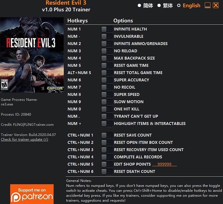 Allgemeine Google-Suche für Resident Evil 3: Lösung, Erfolge, Trainer, Cheats... Also einiges kommt einem hier bekannt vor. Aber man kann hier nicht zwischen Jill und dem anderen Typen wählen, zu Spielbeginn, sondern es gibt nur einen Spielverlauf, und da wechseln sich Jill und der andere Typ, der diesmal Carlos heißt, ab. Anscheinend braucht man zum Speichern keine Farbbänder mehr, jedenfalls auf Leicht, und das Messer geht jetzt nicht mehr kaputt. Ansonsten dürfte alles halbwegs bekannt sein. Es gibt auch ab und zu automatische Speicherpunkte, das wird links oben angezeigt. Hinweis: die letzte Szene vermassle ich immer, man muß schnell auf den Kopf (bzw. Körper) von dem Typen zielen, und dann erst abdrücken! Keine Angst, Jill hat da automatisch eine Pistole dabei. Schwierigkeitsgrade: Assistiert - Standard - Veteran. Hat man "Veteran" beendet, wird "Albtraum" freigeschaltet. Hat man Albtraum beendet, wird "Inferno" freigeschaltet. Bei Albtraum und Inferno sind die Gegner stärker, mehr, und tauchen auch an anderen Stellen auf, als bisher gewohnt. Auch Wertsachen liegen eventuell woanders, und sind generell weniger. Auf Inferno gibt es keine automatischen Speicherpunkte mehr, und weniger Schreibmaschinen zum Speichern. Die Bedingungen für Rang S sieht man unter "Ergebnisse". Savegame - Spielstand: Gespeichert in (Steam-Version): C > Programme (x86) > Steam > userdata > "deine Nummer" > 952060 > remote > win64_save Hinweise: Erster Safe: 9 links, 3 rechts, 7 links, U-Bahn-Weiche: FA 02, RA 03, SA 02, + Enter! Carlos: Umkleideraum: CAP, Spind in 3F: DCM, Safe in Polizeistation: 9 links, 15 rechts, 7 links, Safe Krankenhaus: 9 rechts, 3 links, Serum: Mid, High, Low. Fling-Trainer: Download Bild: klicken zum vergrößern!
