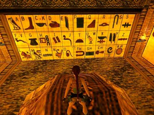 Hier nimmst du den Letter, und zündest deine Fackel an einer Feuerstelle an. Dann zündest du damit den nicht brennenden Leuchter bei der Säule an, und kannst nun in die Öffnung springen (etwas schwierig), wo du den Southern Shaft Key holst. Damit gehst du wieder zurück, und setzt den Schlüssel in die Fassung ein. Jetzt kannst du hinauf zu der Leiter springen, und wieder aus der Pyramide hinaus klettern, womit das Level beendet wäre...