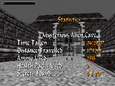Springe hoch zu der Kante, ziehe dich hinauf, und halte sofort die Handlungs- und die Sprungtaste gedrückt, um an dem Gitter zu landen, und dich hinauf zu ziehen. Nun springst du auf den Steg, der den Raum umgibt, und kannst dich in eine Öffnung zu den Aliens hinunter lassen, wo du ein Medipack im Wasser findest, und nun scheint dieses Level beendet zu sein, oder habe ich da was vergessen...