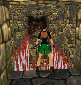 In der dunklen Ecke gelangt Lara nun durch einen Kriechgang zu einer bekannten Stelle und kann leicht den Weg zurück zu der Stelle finden, wo der zweite Schlüssel eingesetzt wird. Jetzt kommt eine eher unangenehme Stelle. Über blutige Speere muss Lara mit gut getimten Sprüngen an schwingenden Keulen vorbei die andere Seite erreichen. Sieht aber schlimmer aus als es ist ... also nur Mut!!