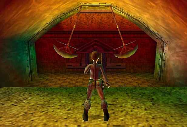 Lara ist in einem alten Tempel auf der Suche nach dem Artefakt des Drachen, der sie natürlich daran hindern will. Um das Level spielen zu können, installierst du am besten den Level Manager. Beim Beginn in den Gang kriechen und die Armbrust holen, dann den Hebel drücken und durch die Pfeilfalle kriechen. Die Stelle mit dem Skelett ist eine Falle. Im nächsten bereich kommt ein Affe, den man schnell erlegen muß, sonst schließt er die Tür, aber dahinter gibt es nur Fackeln, also ist es nicht so wichtig. Wenn die Tür noch offen ist, dann muß man durch die Dornenfalle spurten. Dann mindestens 2 der kleinen Säulen auf die markierten Bodenplatten schieben und durch die geöffnete Tür gehen. Den Gang hinunter, über die Bröselplatten laufen/springen und am Ende des Gangs die Kugel auslösen, schnell zurück und in den Gang kriechen. Dort, wo die Kugel herkam, liegt die Hand des Orion. Dann wieder in den Gang kriechen, die Uzi nehmen und die Hand des Orion nebenan einsetzen. Im nächsten Gang die Zeichen an der Wand merken. In der Halle liegt das Gewehr. Dann muß man die 4 Unterwasser-Hebel in der Reihenfolge der Zeichen ziehen, damit sich oben eine Tür öffnet. Bei der Messerfalle muß man ganz oben an der Decke hindurch tauchen. Anschließend ganz hinauf klettern und springen und in die nächste Halle gehen. Zuerst links in den Gang. Hier liegt ein Schlüssel, den man jetzt noch nicht nehmen kann. Also weiter in den Raum zu den Drachen. Dort 2 Bodenhebel ziehen, dann die Stange hinauf klettern. Oben den Hebel drücken und das Gewehr nehmen. Wieder hinunter und den Schlüssel nehmen, diesen im Drachenraum einsetzen und durch die Tür auf der anderen Seite gehen. Drinnen den linken Hebel ziehen und Kartusche 1 nehmen. Nun wieder zurück in die große Halle und in den anderen Gang gehen. Dort rechts in den Gang kriechen und den Hebel ziehen, und links in die nächste Halle gehen. Die Stellen mit den Seifenblasen sind sicher. Durch die Dornen zu dem Medi und dem Revolver laufen, nicht springen! Nun zu dem blauen Eingang gehen. Vorsichtig alle Kugeln auslösen und oben die Kartusche 2 holen, dann wieder zurück in die große Halle. Die Kartuschen kombinieren und einsetzen, die Monster beseitigen und den Gang hinunter rutschen...