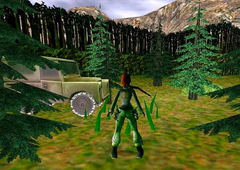 Um das Level spielen zu können, installierst du am besten den Level Manager. Unter einem Baum liegt die Uzi (hinknien zum aufheben), dann weitergehen und am Ende des Waldes in den Kriechgang ziehen. Weiter gehen und zu dem rostigen Haus hinüber springen. Dort nach rechts in den Wald hinauf gehen, links liegt Secret 1, und weiter oben Secret 2. In dem rostigen Haus ist Rad 1, hinter dem Haus in den Gang kriechen und im nächsten Bereich vom Block aus auf den Hügel springen und die Fuse nehmen. Damit zurück zum ersten rostigen Haus und in die Bärenhöhle hinunter steigen und weiter hinab, bis Lara in einen Raum mit einem großen Transformator kommt, dort die Fuse einsetzen. Dann auf den Schienen zur anderen Seite begeben und die Wachen erlegen, einer hinterläßt den Secondary Complex Key, hier gibt es Rad 2 und 3. Nun wieder hinauf zum Beginn des Schnee-Bereichs und zur Hütte hinüber springen. Drinnen die Tür aufsperren, weiter ins nächste Haus und die Brechstange vom Schreibtisch nehmen. Zurück zum ersten rostigen Haus und geradeaus weiter in die blaue Höhle, dort an dem Eisspalt zur anderen Seite hangeln und zum Eingang springen. In der nächsten Höhle den Hebel drücken, zurück und in die nächste Höhle, dort weiter in das Zimmer springen, und die Shotgun und den Cabana Key nehmen. Damit zurück und die Hütte aufsperren, drinnen Rad 4 herausbrechen, dann Rad 1 - 3 holen und zurück zum Fundort des Brecheisens. Die 4 Räder auf die Fassungen einsetzen und nebenan den Gold Key holen. Damit wieder hinunter zum Eingang zum Trafo und in der kleinen Höhle den Schlüssel einsetzen, dann in die Mine gehen...