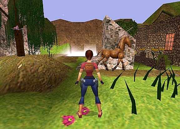 Dieses Spiel ist für Kinder gedacht, es gibt keine Gegner, aber es ist sehr schön gemacht und besticht durch seine wunderschöne Musik. Um das Level spielen zu können, installierst du am besten den Level Manager. Im Wasser gibt es ein Secret 1, dann rechts hinten in den Gang gehen, und weiter in den nächsten Bereich kriechen. Links den Hebel ziehen, und den Block wegziehen, dahinter die Flower holen. Durch die offene Tür gehen und den Stein zerschießen. Im nächsten Hof die beiden Vasen zerschießen und aus dem Zimmer den Stalk holen, rechts vom Schrank die Banane nehmen = Secret 2 Im anderen Zimmer den Teddy wegziehen und die Banane nehmen. Den Stein bei der Kugel zerschießen und dort den Stalk mit der Flower kombinieren und auf dem grünen Stengel einsetzen (leicht schräg davor stellen). Die Kugel rollt hinunter, dort abwärts gehen und den Schalter drücken. Mit dem Motorrad wieder nach oben fahren und den Gang, wo die Flower war, hinauf. Absteigen und die vier Steine in der Mitte zerschießen, dann durch die Tür gehen und die 2 Vasen zerschießen. Durch die nächste Tür und 3 Vasen zerschießen und den Schalter drücken. Hinter der Tür in den Kriechgang hochziehen, weiter kriechen und am Ende des Ganges hinauf klettern in den nächsten Raum. Die 2 Blöcke auf die markierte Stelle schieben und im nächsten Raum die 2 Vasen zerschießen. Den Schacht hinunter klettern und unten den Schalter drücken... |