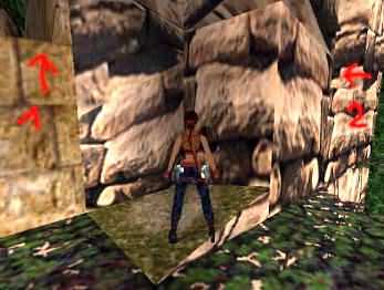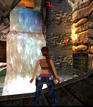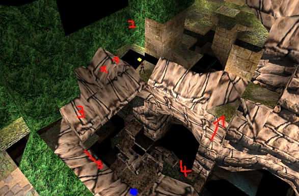 oben links (2). Per Rückwärtssalto gelangt man zu (3), wo man stehen kann.