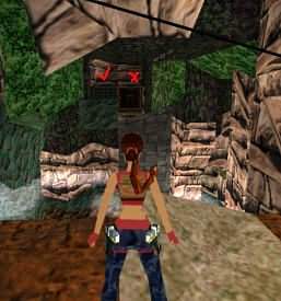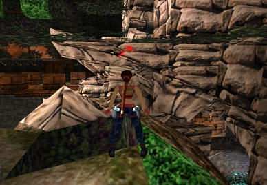 Lara springt von der Schräge zurück auf eine höhere grüne Schräge (2 hier