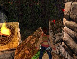 folgt eine komplizierte Sprungkombi: Vom gelben Punkt, wo man stehen kann