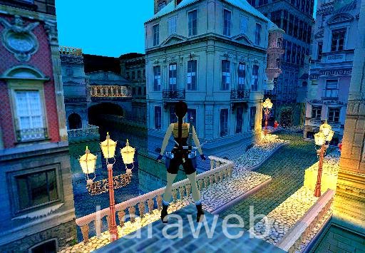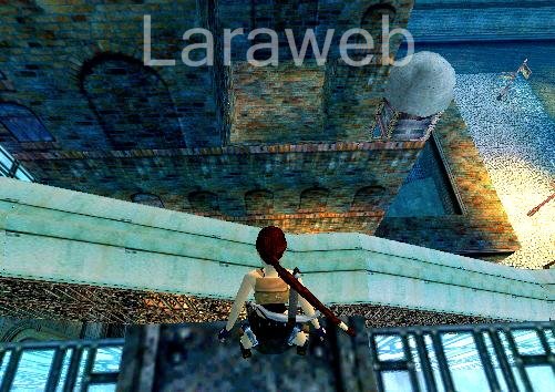 Lösung: 1. Prelude Gehe in die Zeitmaschine und drücke den grünen Knopf... 2. Somewhere Sometime Gehe hinaus und nimm Prof Wells Handy Encyclopedia, hangle an der Dachkante zur anderen Seite und springe hinunter auf den Block in der Ecke. Springe mit Anlauf an die Leiter, festhalten, loslassen und mache auf dem Gitter schnell eine Rolle und springe mit Anlauf in die Nische mit dem Medipack. Lasse dich dann hinunter und gehe zur automatischen Tür. Erlege den Schurken und nimm seinen Revolver. Gehe nach rechts weiter zur Kreuzung, dort rechts weiter bis zur Brücke. Ab jetzt gibt es zwei Wege: Weg 1: springe nach links in den Fluß und gehe rechts um die Ecke an Land, klettere hinauf und öffne die Tür. Ziehe den Hebel und gehe schnell auf die Liftplatte, ziehe dich weiter hinauf, öffne die Deckenluke und ziehe dich auf das Dach hinauf. Springe nun rückwärts auf das Dach, halte dich an der Kante fest und hangle zur Wäscheleine, an der du hinüber in das nächste Haus rutschst. Gehe hinunter, öffne die Tür, und schiebe die Kiste weiter... (weiter im übernächsten Absatz = Treppenhaus) Weg 2: springe in den Fluß und öffne unter der Brücke die Unterwassertür (mit dem Gitter), tauche hinein und gehe hinten rechts auf dem Gitter an Land. Springe an die Leiter, festhalten, dann auf dem neuen Gitter an Land gehen, die Deckenluke öffnen und hinauf ziehen. Zerschieße die Kisten und gehe weiter in das Treppenhaus... (du kannst jetzt auch zurück und Weg 1 nehmen für weitere Wertsachen) Treppenhaus: Gehe die Treppen hinauf, öffne die Tür und hole links Bonus Object 1. Gehe hinaus auf den Balkon, klettere rechts an der Säule hinunter auf den nächsten Balkon und springe hinunter auf den Boden. Gehe wieder auf die Brücke, springe nach rechts in den Fluß, schwimme bis fast zum Ende und gehe rechts an Land, die Rampe hinauf und in den Hof. Ziehe den Hebel und gehe zurück, springe zu der Dachschräge im Gang hoch, festhalten, hochziehen und mit Rolle abspringen. Gehe links weiter, springe auf den Balkon und springe dort rechts am Dach hoch, halte dich fest und hangle nach links weiter um alle Ecken bis zum Ende. Lasse dich auf die Schräge fallen, festhalten, hochziehen, mit Rolle abspringen und festhalten, hochziehen. Zerschieße das Gitter im Geländer und springe mit Anlauf auf die nächste Mauer. Lasse dich hinunter und gehe links hinter den Glaspalast. Springe vom Hügel aus mit Anlauf über den Zaun und schiebe die Tür bei dem schrägen Holzblock zur Seite (siehe Screenshot, klicken zum vergrößern): Springe dann von der Schräge aus durch die Glasscheibe, und springe links hinten zur Leiter hoch, festhalten, dann hinauf klettern. Gehe zum anderen Ende, springe an die Stange, an der die Lampe hängt, drehe dich und springe ab. Nimm den Lost Key und gehe wieder hinaus, springe über den Zaun und ziehe dich links wieder auf die Mauer hoch. Gehe auf der Mauer links weiter zum Ende, ziehe dich hoch und klettere die Leiter hinauf. Gehe rechts zum Ende und rutsche rückwärts auf das Vordach hinunter, festhalten, nach rechts hangeln, hochziehen, mit Rolle abspringen und in der Luft auf den kleinen Balkon lenken. Zerschieße das Geländer und das Gitter beim Vordach, springe zum Kriechgang, begib dich weiter bis zum Ende, zerschieße das Gitter und lasse dich in den Hof hinunter. Nimm das Brecheisen und breche die Holztür auf. Gehe weiter zum Turm und nach rechts, um die automatische Tür zu öffnen. Gehe dann zurück zum Turm und springe über die Mauerblöcke weiter hinauf, bis du an einem Mauerspalt nach rechts hangeln kannst. Lasse dort los und springe auf das Gerüst hinauf. Springe auf den Turm, nimm Bonus Object 2, begib dich wieder hinunter und nach nebenan in den Park mit der Pferdestatue. Gehe wieder auf die bekannte Brücke, geradeaus weiter und setze links den Lost Key ein. Zerschieße daneben die Fenster, gehe hinein und zerschieße die kleine Pyramide auf dem Tisch. Nimm JFs Housedoor Key, öffne die Tür und gehe nach nebenan. Zerschieße links die Flaschen im Regal und schiebe es zur Seite. Krieche dahinter hinein, steige die Leiter hinauf und hole Secret 1. Gehe dann rechts hinten auf den Block und zerschieße das Fenster im anderen Haus (hochspringen). Springe mit Anlauf und gedrückter Handlungstaste hinunter auf den Balkon mit den Fackeln, öffne die Tür und die Deckenluke, ziehe dich hoch, zerschieße das Gitter und ziehe dich weiter hinauf. Zerschieße das Fenster, falls nicht schon geschehen, laufe nach rechts auf das Dach hinunter, festhalten, nach links um die Ecke hangeln und bis zum Ende des langen Teils des Daches, hochziehen und abspringen. Ziehe dich weiter hinauf und fahre an der Wäscheleine auf den kleinen Balkon. Öffne die Tür, gehe hinein und hole aus dem Schrank den Museum Key. Zerschieße dann das rechte Fenster und lasse dich hinunter in den Hof des Museum of Fine Arts. Lara könnte jetzt schon in das Museum, aber zuerst... Gehe links in den Gang und öffne den Kanaldeckel (Falltür). Lasse dich hinunter, öffne die Unterwassertür am anderen Ende und ziehe dich in der nächsten Halle links auf die kleine Schräge hoch, springe ab auf die Schräge hinter dir und sofort vor an das Rohr, festhalten, etwas hinauf klettern und auf das Gitter abspringen. Zerschieße das Gitter, krieche hinein, zerschieße das nächste Gitter und öffne rechts die Deckenluke. Ziehe dich hoch und nimm Bonus Object 3. Ziehe dann den Hebel und springe auf die Plattform über dem Fluß. Zerschieße das Gitter und springe zur anderen Seite. Gehe wieder in den Park mit der Pferdestatue und links durch den schmalen Gang in den Hof, wo das Brecheisen war. Öffne rechts die Tür, gehe hinauf und setze JFs Housedoor Key ein. Öffne die nächste Tür und nimm bei der Tafel Barrel with Crude Oil. Gehe wieder zurück in den Park und steige auf der anderen Seite die Leiter hinauf. Zerschieße das Fenster, ziehe den Hebel, lasse dich wieder hinunter und gehe rechts die Treppe