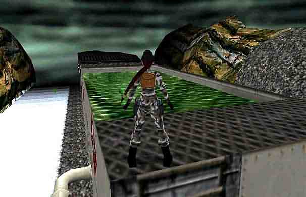 Lara macht sich an einem Zug zu schaffen, der giftige Chemikalien transportiert. Um das Level spielen zu können, installierst du am besten den Level Manager. Die kleinen Kisten zerschießen und über die große Kiste klettern, den Ninja erlegen und den Schalter drücken, dort rechts oben das Gitter einschießen und Secret 1 = Shotgun holen. Dann mit Anlauf schräg hinüber in den nächsten Waggon springen, links oben auf der Kiste liegt Secret 2 = Shotgun. Weiter gehen und auf den offenen Waggon springen, dann an die Leiter des nächsten und hinauf klettern. An der Kante zum anderen Ende hangeln, und in den nächsten Waggon hinunter "laufen" (vorher den Ninja erlegen). Den Schalter nicht drücken, sondern das Laservisier aus der Kiste nehmen und Memo to Repairman. Dann wieder die Leiter zum letzten Waggon hinauf steigen und auf das Dach springen. Am anderen Ende hinunter zum Eingang des nächsten Waggons "laufen" und drinnen die Wertsachen holen, dann wieder zurück und auf das Dach dieses Waggons steigen. Links an der Seite des Waggons zur Öffnung hinunter lassen und hinein ziehen. Die Uzi und den Brass Key nehmen, und wieder auf das Dach hinauf steigen und zum nächsten Waggon gehen. Drinnen aus der Kiste den Letter from Officer nehmen, den Gabelstapler heraus ziehen und dahinter den Revolver nehmen, dann den Schalter drücken und in den nächsten Waggon springen. Hier den Schlüssel einsetzen und auf das Dach klettern, zum letzten Waggon springen und am Ende an die Dachkante hängen = Secret 3. Wieder zurück, die Shotgun nehmen und zurück auf das Dach des Waggons mit dem Gabelstapler. Die Falltür öffnen und hinunter, die Kisten zerschießen und Cargo Access Key nehmen, dann die Tür öffnen und zurück in den Waggon mit dem Schlüsselloch. Dort den Cargo Key einsetzen und in den nächsten Waggon springen. Hier schaut Lara auf die explosiven Fässer. Diese muß man vom Dach des anderen Waggons aus mit Laser plus Revolver treffen, so daß sie explodieren, dann kann man dort das Brecheisen holen. Wieder zurück zum Tank-Waggon und hinein in den Waggon mit den Computern, das Brecheisen als Hebel verwenden und den Schalter drücken, dann aus dem Tank-Waggon den Front Access Key holen. Damit zurück zum Beginn des Levels, den Schlüssel einsetzen, zur Lok springen, von dort zur Leiter und auf das Dach klettern...