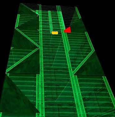Zurück zur Level-Übersicht von TRLE Gold Hier ist ein Savegame für den Beginn des Levels. Rechts kann man eine Tür öffnen und drinnen den Schalter drücken. Dann hinaus und in das andere Haus gehen. Auf dem Tisch liegt ein Schlüssel. Damit im Hof die andere Tür aufsperren und drinnen mit dem Schalter die Tür öffnen und den Revolver holen. Zurück zur Tür und dort nach oben in das dunkle Labyrinth ziehen. In einer Ecke liegt die Shotgun und es gibt zwei Schalter. Mit dem einen verschließt man die Luke hinunter ins Erdgeschoss, kann aber dort dann einen Schlüssel holen, danach die Luke wieder öffnen und den anderen Schalter drücken. Jetzt wieder hinunter in den Raum, wo der Revolver lag und dort den Schalter neben dem Regal drücken. Nun zurück in den vorherigen Raum und mit dem Schlüssel die Tür öffnen. Im nächsten Raum rechts den Schalter drücken und in die Dusche gehen. Den Schlüssel oben aus dem Kriechgang holen und den Schlüssel aus dem Wasser. Nun zurück in den Raum mit der Landkarte am Levelbeginn und dort mit dem Schlüssel die Tür aufsperren = Secret 1 Uzi und ein Schlüssel Dann im Hof den Schlüssel einsetzen. Drinnen rechts die Tür aufsperren, im nächsten Raum den Schalter auf der Treppe drücken und zurück in den Gang am Levelbeginn und in der Küche den Laser nehmen. Dort die Kiste herausziehen und zum Schlüssel kriechen. Wieder zurück in den Hof und in dem breiten Gang links den Schalter drücken. Dort in den Gang gehen und die Tür öffnen. Drinnen rechts in den Kriechgang ziehen. Weiter bis zum Schlüssel kriechen und wieder zurück und hinunter. Das Schloß in diesem Raum aufsperren und durch das geöffnete Gitter gehen. Hier ist ein Schlüssel und ein Bild an der Wand, daß die Schalterstellung für das folgende Rätsel erklärt. Jetzt in den Raum mit der Landkarte am Levelbeginn gehen, den Schlüssel einsetzen und in den Keller hinunter gehen. Das Schloß aufsperren und gleich danach den Block in die Wand schieben. Hier liegt Muni. Dann weiter in den Keller gehen. Hier gibt es ein unsichtbares Wesen, also schießen! Zunächst die Munition und den Schlüssel nehmen. Bei der Holzkiste gibt es oben in der Ecke einen Sicherungskasten, diesen mit dem Revolver plus Laser abschießen, so daß er brennt, und zurück zu der Kiste, die man hinein geschoben hat, dort den Schlüssel von der Kiste nehmen. Jetzt wieder in den Hof hinauf und am Levelbeginn oben den Sicherungskasten zerschießen. Dort in den Gang gehen und rechts die Treppe hinauf, dort aufsperren und drinnen den Schlüssel holen und Secret 2. Nun wieder hinunter in den Keller. Zuerst die drei mittleren Schalter drücken und aus dem Gang die Holzfackel holen. Dann die drei Schalter wieder nach oben stellen. Wichtig: wenn man einen Gang wieder verläßt, müssen die entsprechenden Schalter wieder nach oben gestellt werden! * * Jetzt die Fackel im Hof anzünden und wieder in den Keller. Hier die 2 Fackeln an der Wand anzünden. Dann die zwei linken Schalter drücken und in dem Raum die 2 Fackeln anzünden. Achtung, da drin ist auch ein unsichtbares Tier! Nun zu den 5 Schaltern und die zwei rechten drücken, dort den silbernen Schlüssel holen, das Gitter aufsperren und drinnen den Schlüssel einsetzen. Nun wieder hinaus in den Hof und in dem breiten Gang und hinten das Gitter aufsperren. Drinnen muß man oben die Kiste wegschieben und sieht den Plan, wie man nachher über die Säulen springen muß. Dort in den nächsten Raum gehen zu Secret 3 Armbrust Nun wieder in den Keller und die beiden linken Schalter drücken. In den Gang gehen und weiter zu den Säulen. Nach links springen, dann nach links zur Wand und schräg nach rechts vorn weiter zum Schalter. Anschließend zurück zu den 5 Schaltern und die zwei rechten drücken. Hier in den gefluteten Gang tauchen und weiter, bis man an Land gehen kann. Dort in den Gang kriechen und hinaus gehen... Movie Theatre: Den Walk of Fame Star heraus brechen und weiter gehen. Am Abgrund so hinunter rutschen, daß man sich auf der anderen Schräge festhalten kann, dort nach rechts hangeln, und rückwärts abspringen zum Medipack = Secret Dann weiter hinunter rutschen, und kurz vor dem tödlichen Wasser nach vorne springen und festhalten. Jetzt sieht man nur noch diese Kamera-Einstellung wie unten im Bild. Man muß hinauf bis zur roten Kante springen, dort festhalten, nach links hangeln, dann hochziehen, rückwärts abspringen, und mit gedrückter Handlungstaste sofort wieder nach vorne springen, um sich an der gelben Kante festzuhalten, und hochzuziehen. Der weitere Weg dürfte dann klar sein. Man kommt wieder zurück ins Kino, aber hier sind alle Türen zu. Deshalb muß man durch den grünen Vorhang gehen, und an der Wand den Walk of Fame Star einsetzen, dann geht dort eine Tür auf, und man kann den Movie Star 4 nehmen, und zurück ins Kino gehen...
