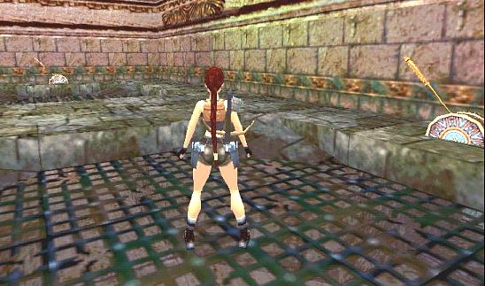 die Kante hinüber, so das Lara nach unten auf einer Plattform landet.