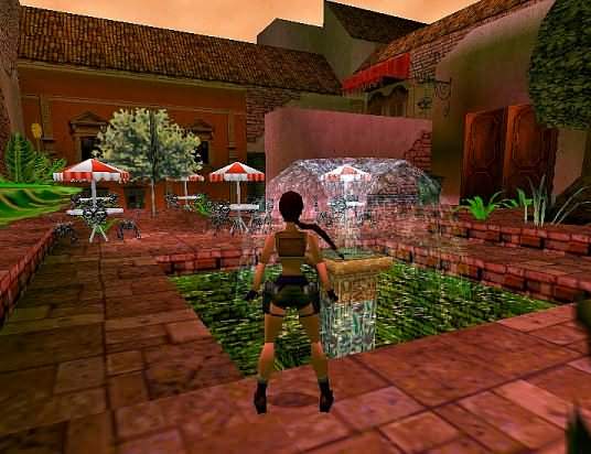 Um das Level spielen zu können, installierst du am besten den Level Manager. Weitergehen und nach rechts, der Schurke verliert den Haustürschlüssel, damit die Tür aufsperren. Drinnen die Leitern hinauf steigen (auf einem Fensterbrett liegt die Uzi) und oben auf das andere Dach hinüber springen, dort hochziehen und den Cafe-Schlüssel holen. Zurück zum Beginn und nach links in das Straßencafe, dort aufsperren und drinnen den Block wegziehen, darunter liegt der Dachstuhl-Schlüssel. Dann den Block zum Fenster schieben, um die Tür wieder zu öffnen. Jetzt wieder die Leitern hinauf und die Tür aufsperren. Drinnen den Hebel drücken und hinunter zu der geöffneten Tür. Auch hier den Hebel drücken und zur nächsten Tür, den Hebel drücken und zum Secret tauchen. Dann wieder die 2 Leitern hoch und draußen rechts auf das Dach springen, zum Hangelspalt herunterlassen und zur Leiter hangeln, dann rückwärts abspringen in die Nische, den Block aus der Wand ziehen, daran vorbei hangeln und den Hebel ziehen. Wieder hinunter zum Beginn und durch die neue Tür. Aus dem Brunnen den Bibliothek-Schlüssel holen, zurück zum Beginn und aufsperren. Drinnen immer weiter gehen, bis Lara eine Tür aufstoßen kann, der Schurke verliert den Schleusen-Schlüssel. Dort hinauf klettern und den Jumpswitch betätigen, dann auf den großen Bücherblock klettern und drinnen den Schalter drücken. Über die Spalten auf das Dach des Cafes begeben und hinüberspringen auf die andere Dachseite, an der Säule unter der Kugel den Jumpswitch ziehen und den Schaltkreis nehmen, diesen am Levelbeginn einsetzen, dann dort durch das geöffnete Tor schwimmen und die Tür aufsperren, drinnen den Schalter drücken und schnell zu der Zeittür begeben. Hinten links den Block aus der Wand ziehen und die Leiter hinauf steigen, dann auf den Kronleuchter springen und weiter zur anderen Seite. Dann weiter und in dem langen Gang den Schalter drücken. Jetzt wieder zurück und bei der Bibliothek durch das geöffnete Gitter schwimmen. An Land gehen und an der Decke zu dem Jumpswitch hangeln, dann in der Wasserhalle in den Gang gehen und rechts Goldmünzen holen (ein Tor öffnet sich), dann wieder zurück zum letzten Haus, in dem Lara war, rechts davon in den Eingang gehen und in das Haus, den Schalter drücken und weitergehen, links in der Gasse die Mülleimer zerschießen und den Kontrollraum-Schlüssel nehmen, dann hinunter ins Theater gehen. Auf einer Kiste liegt die Armbrust, dann den Kontrollraum aufsperren und hinten den Block aus der Wand ziehen. Rückwärts die Schräge hinunter rutschen und weiter zum Wasser gehen, zum Hebel tauchen, dann in die Gänge, ein Secret und einen Schaltkreis holen und wieder zurück ins Theater. Den Schurken im Zuschauerraum erlegen, er hinterläßt den Tribünen-Schlüssel, damit oben die Tribüne aufsperren, dort auf die Schräge springen (über das Geländer) und zur anderen Seite hangeln. Dort macht Lara vor dem Geländer halt, also hochziehen, abspringen mit Rolle und nach links lenken. Den Schlüssel nehmen und wieder in den Kontrollraum, die Tür aufsperren, hinunter und auf der Bühne den Schaltkreis einsetzen. Jetzt zurück zu den 2 großen Ventilatoren, links vorbei und den Straßenschlüssel holen. Dann wieder hinaus aus dem Theater und im Park das schwarze Gitter aufsperren. Weiter, die 3 Schurken erlegen und Bartolis Schlüssel nehmen. Für die letzte Tür braucht Lara keinen Schlüssel, einfach aufstoßen...