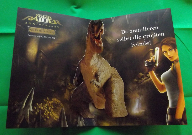 Bei Anniversary bekam ich auch wieder so eine Presse-Info CD mit einer tollen Mappe/Klappkarte, wenn man die aufklappt, kommt einem ein Dino entgegen (Bild 4 und 5).