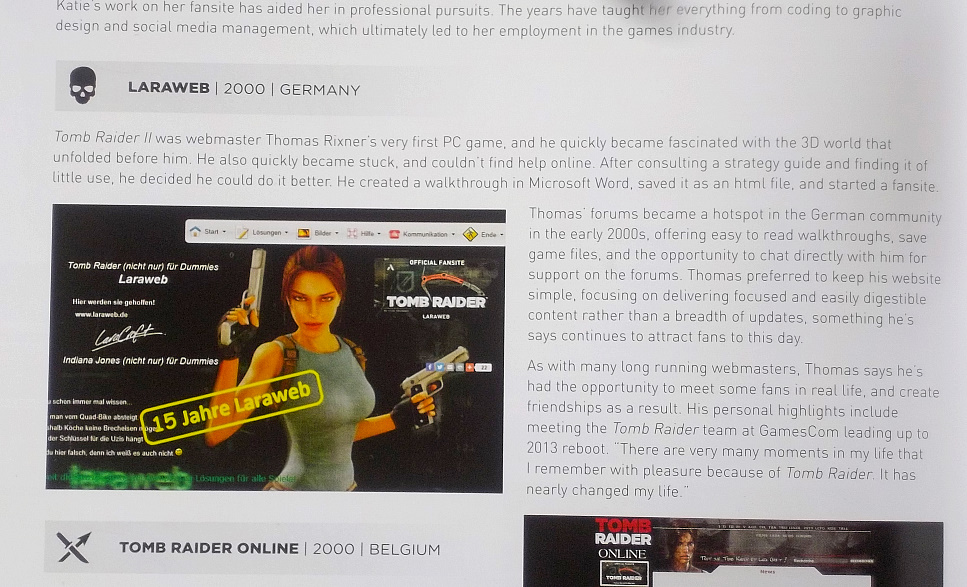 Also die erste deutsche größere Fanseite ist bzw. war Hagix, die Seite gibt es noch, aber Hagix hat schon vor Jahren aufgehört, da noch was zu machen, offiziell steht da: Letzte Änderung dieser Seite: 10.5.2009, also das ist jetzt irgendwie so eine Art Kartei-Leiche. Dann war da noch Lara Forever, das wurde aber inzwischen gelöscht. Tatsächlich bin ich dann also die älteste deutsche TR-Fanseite, die tatsächlich auch noch weiter geführt wird.