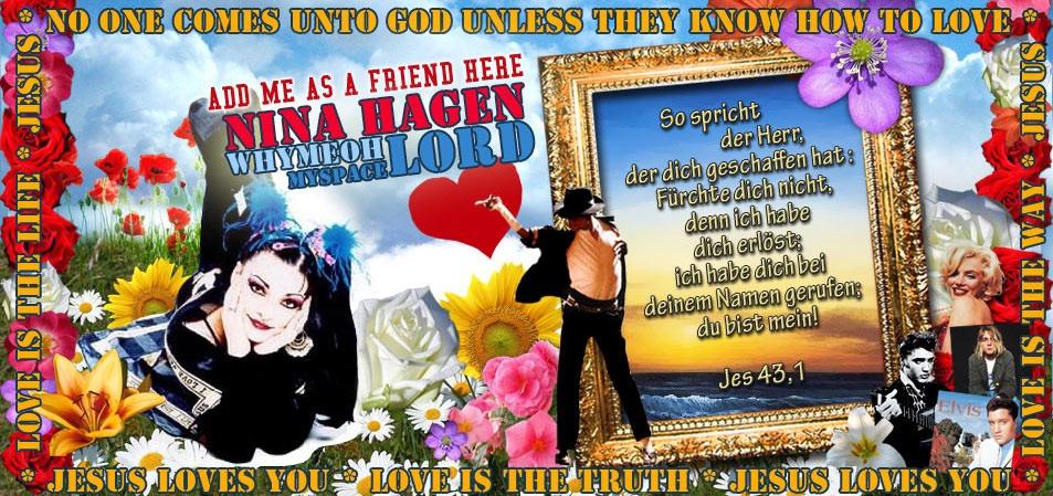 nichts gegen nina hagen (sie ist eine großartige sängerin und ich finde sie gut), aber ich glaube sie leidet an einer ernsthaften persönlichkeitsstörung. gerne erinnere ich mich an die "farbfilm"-nina zurück, wie "normal" sie damals war. als man sie 1977 von der ddr ausbürgerte, wurde ihre art immer provokanter. und ich glaube das war das problem. die entdeckung der neuen westlichen welt war zu viel für sie, sie hat sich in alles neue quasi mit dem kopf nach vorne reingestürzt. sie fing an, drogen zu nehmen, in ihrer biografie erzählt sie von ihren lsd-trips und ihrem kokainkonsum, einige lieder hat sie sogar im rauschzustand aufgenommen wie z. b. african reggae oder sämtliche des albums "nunsexmonkrock", und dann noch ihr heroinabhängiger freund der ihr die tochter cosma shiva schenkte und 1987 an aids verstarb. dieser ganze trubel trug dazu bei, dass nina so wurde wie sie jetzt ist. in den neunzigern fand sie vorläufig ihre ruhe, als sie indien für sich entdeckte, doch das änderte nichts an ihrer überheblichen und unüberlegten art, verursacht durch die üblen einflüsse der westlichen welt.
