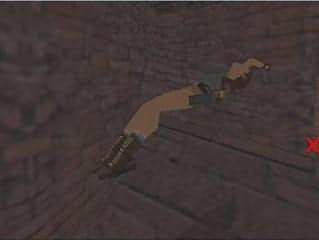 Es ist nicht möglich wie im Bild zu sehen im Dreieck zu springen, sondern es muss in einem runden Bananensprung erledigt werden. Dann folgst du dem Weg nach oben und hangelst über die "Kugelschräge". Danach gehst du links in den Raum und drückst den Wandschalter. Dieser bringt ein "Pendel" in Bewegung. Laufe um den Block herum und rutsche die Schrägen hinab. Am Ende der dritten Schräge musst du abspringen, sonst landest du im sicheren Tod. Du stehst jetzt dem angesprochenen Pendel gegenüber, welches dir im folgenden sehr nützlich sein wird.