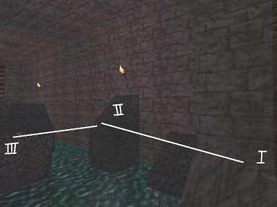 Anschließend springst du ins Wasser und tauchst den Gang entlang, bis du aus dem Wasser steigen kannst. Du befindest dich in der "4-Säulen-Halle". Jetzt gibt es zwei Wege: