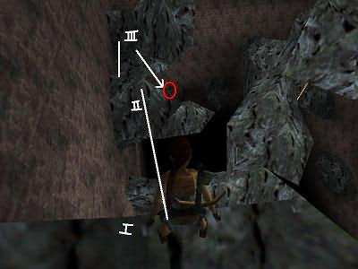 An dieser Stelle musst du dich entscheiden. Entweder holst du dir das dritte Secret, oder du beendest den Level mit dem Motorrad. Allerdings kannst du das Secret nicht mehr holen, sobald du das Motorrad benutzt hast, weil es ab dann brennt. In jedem Fall wirst du nach dem Secret zurück müssen und das Motorrad holen. [Beschreibung Secret 3]