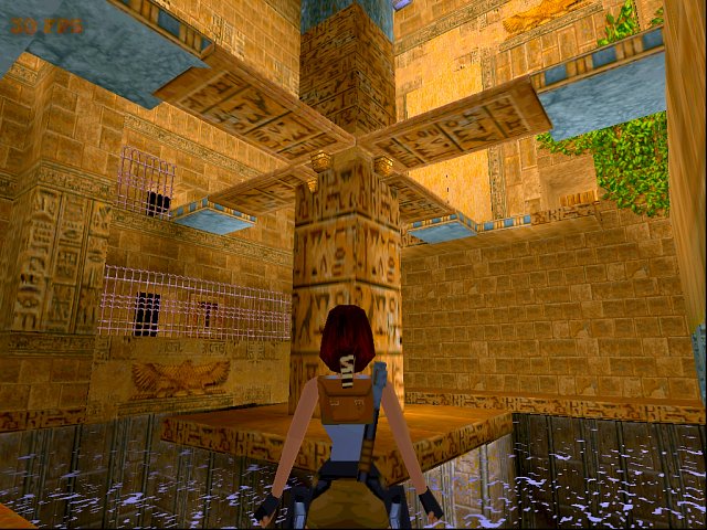 Die neuen TR 1 Remastered Erfolge, die man hier (in diesem Level) kriegen kann, stehen nun in der folgenden Lösung, die restlichen Erfolge stehen hier. Zeitspiel: Speedrun (Level möglichst schnell abschließen) Tomb Raider Remastered Steuerung. Worum geht’s? Zunächst mußt du einen Schlüssel finden und so den nächsten Bereich öffnen. Hier entdeckst du vier Hebel, um damit je eine Brücke herabzulassen und so die vier Artefakte zu finden, die du in der Säule am Beginn des vorherigen Levels einsetzt. Allgemeine Anmerkungen: die Steam- und GOG-Version konnte ich auf Windows 7 recht gut mit einem Logitech-Joystick spielen. Die Gegner in TR 1 kann man fast immer ganz einfach überlisten, indem man schnell auf eine höhere Stelle klettert/springt, und von dort aus bequem erledigt. SG0 Gehe weiter, nach rechts und die Stufen hinab. Ziehe dich unten links an der Mauer hoch und folge dem Gang bis zum Ende, wo du rechts eine Halle mit vier dunklen, beweglichen Blöcken erreichst. Ziehe den ersten, rechten einmal heraus und schiebe ihn von der anderen Seite noch einmal weiter. Gehe dann rückwärts einen Schritt in den dahinterliegenden Gang und laufe sofort wieder zum Block, um auf ihn zu klettern und den Panther zu erlegen. In seinem Gang findest du ein Medipack. Wiederhole dieses Spielchen mit dem nächsten Block, allerdings wohnt hier nur ein Panther, also nicht unbedingt nötig. Ziehe dann den dritten Block beiseite, hänge dich dahinter an die Kante des Lochs und ziehe dich wieder hoch, um einen weiteren Panther anzulocken und zu erlegen. Lasse dich dann hinab und drücke unten den Hebel. Klettere links vom Hebel die hellen Blöcke bis nach ganz oben, wobei du ein Medipack mitnimmst, und springe vom höchsten Block mit Anlauf in die Wandöffnung. Hinter der goldenen Tür liegt Munition. Lasse dich dann in die Öffnung herab, um wieder die Halle mit den Blöcken zu erreichen. Verschiebe nun den letzten Block, um ein Wasserloch zu erreichen. SG1 Springe hinein, tauche weiter und gehe schnell an Land, um ein Krokodil zu erledigen (Kristall 1 von 7). Am Grund des Beckens findest du Munition, ein Medipack, und in einer Ecknische einen Schlüssel. Kehre damit in die Halle mit den Blöcken zurück und verlasse sie durch den Eingang. Hier öffnest du mit dem Schlüssel zwei Türen. Gehe wieder in die Halle mit den Blöcken und schiebe einen davon unter die geöffnete, goldene Tür oben in der Wand. Klettere hinauf und gehe in den Gang (Kristall 2 von 7). Springe seitlich nach links auf die Treppe, sofort wieder nach rechts und zurück auf den Block, um die Mumie zu erlegen, die du gerade angelockt hast. Dann geht es hinauf und du drückst den Hebel in der linken, hinteren Öffnung, um dann durch die rechte Öffnung zu gehen und an der Säule das Auge des Horus zu holen. SG2 Springe jetzt ins Wasser, hole vom Grund die Magnum-Munition und vom Sockel der großen Säule Schrot-Munition. Zwischen den blauen Blöcken ist rechts ein Gang. Rutsche dort die Rampe hinunter und erlege von oben zwei Panther. Springe nun hinunter, gehe die Treppe hinauf und ziehe dich auf den dunklen Block hoch. Dann springst du mit Anlauf zum nächsten dunklen Block und von dort mit Anlauf/Griff zu dem Vorsprung an derselben Wand. Von hier springst du mit Anlauf zu der Säule in der Mitte und dann zu dem Medipack. Hier hängst du dich bei dem Loch an die Kante und ziehst dich wieder hoch, um unten zwei Mumien anzulocken und zu erlegen. Jetzt mußt du wieder zurück springen und weiter nach oben bis zu dem schwarzen Block in der Ecke. Von ihm ziehst du dich nach oben und erreichst einen kleinen Vorsprung, von dem aus du mit Anlauf/Griff die andere Seite erreichst (Kristall 3 von 7). Hier ziehst du dich auf den höchsten Vorsprung und erlegst eine Mumie (notfalls zurück springen). Am Fuß der oberen Treppe drückst du den Hebel und läßt dich dort zu dem Geländer herab, wo du zweimal Munition und ein Medipack findest.