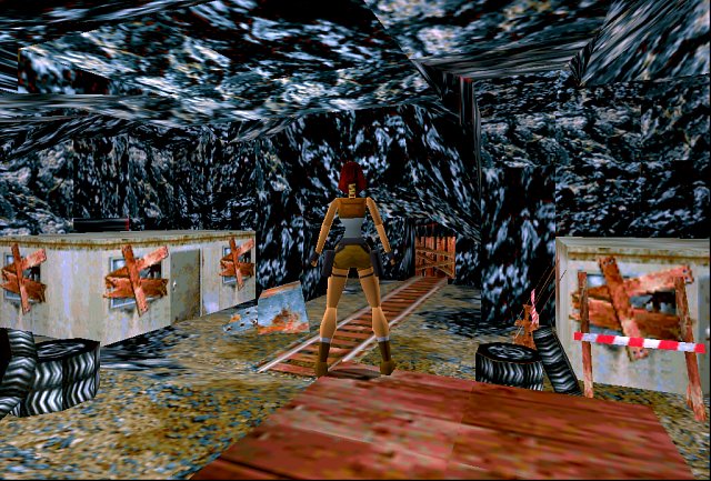 Jetzt kehrst du zurück zum See und gehst bei den Fässern an Land. Hier kommst du zu der Höhle mit dem Schienenfahrzeug, daß du vorhin bewegt hast. SG2 Gehe in den Tunnel und schiebe die Kiste zweimal. Der Gang dahinter führt dich zu der zweiten Sicherung (nehmen). Gehe aber nicht weiter, sondern sofort wieder zurück zur Kiste, sonst wirst du von einem der Ganoven entdeckt. Steige auf die Kiste und ziehe dich hoch in die Nische mit Uzi-Munition, wo du den Schalter drückst. Jetzt geht es zurück zum See und hinter den Wasserfall. Folge wieder dem Gang bis in die Höhle mit der aufgehängten Baracke und weiter in die nächste. Gehe dort links in den Tunnel hinter dem Reifenstapel und folge ihm bis zur Tür, die du vorhin geöffnet hast. Dahinter liegt Uzi-Munition und du drückst den Hebel, um das Förderband einzuschalten, das dir die dritte Sicherung liefert. Jetzt kannst du sie einsetzen SG3 (du weißt ja noch, wo) und damit die Baracke abseilen. In ihr liegen deine Pistolen (endlich!). Nun steigst du auf die Baracke und springst mit Anlauf/Griff zu der Wandöffnung. Hier ziehst du dich gleich rechts hoch in die Öffnung und kommst zu einer automatischen Tür. Achtung! So wie ich es hier beschreibe, hat man es früher gemacht, jetzt darf man diese Bodenklappe über dem Loch nicht mehr auslösen, wenn man den folgenden Erfolg haben will, siehe unten! Rutsche dahinter rückwärts hinab, greife die Kante, und ziehe dich wieder hoch. Jetzt kannst du dich in den nächsten Gang ziehen und erreichst Geheimnis 1 mit Medipack, Uzi-Magazinen und einem Schalter, der wieder die vorherige Tür öffnet. Kehre zurück in den Tunnel und gehe nach rechts weiter zum See vom Anfang. Springe hinunter (Kristall 3 von 7) und begib dich zurück zu dem Tunnel beim Schienenfahrzeug und weiter zu der Stelle, an der du die zweite Sicherung gefunden hast. Erfolg: "Darauf falle ich nicht herein" = Sammle in Natlas Katakomben ein Geheimnis ein, ohne eine Falle auszulösen. Man muß gleich nach oben in den Eingang zum Geheimnis springen, ohne die Bodenklappe über dem Loch auszulösen, und ebenso wieder raus, dann zählt es! Ist in meinem entsprechenden Remastered-Video zu sehen! Erfolg: "Jetzt wird's persönlich!" = Besiege Cowboy. Geht mehr oder weniger nicht anders... Wenn du weiter gehst, kommt ein Ganove (Cowboy), der mit den Magnums, die er dir im letzten Level abgenommen hat, auf dich schießt. Da du nur Pistolen hast, wird das ein echt harter Kampf für dich. Es gibt einen Trick: locke ihn an und laufe schnell zurück zur Kiste, über die du springst und bis zum Schienenfahrzeug läufst. Von hier aus kannst du gemütlich auf den Schurken ballern, da er nicht weiter als bis zur Kiste geht. Anschließend holst du dir deine Magnums zurück (gehören ja schließlich dir!) und gehst in die Höhle SG4, aus der der Schurke kam. Rechts hinten am Abgrund kannst du dich auf einen quadratischen Vorsprung herablassen (Kristall 4 von 7). Dort hängst du dich dann an die Kante, läßt los und greifst den Block darunter, auf dem ein Medipack legt. Hier hangelst du an dem Felsspalt bis ganz rechts und läßt los. Um die Ecke findest du den nächsten Spalt, den du auch bis ganz rechts hangelst und losläßt. Hier siehst du an der rechten Wand noch einen Spalt. Springe mit Anlauf/Griff zu der Kante der darüberliegenden Schräge, lasse los und halte dich sofort am Spalt fest, den du bis ganz rechts hangelst und dich fallen läßt. Folge dort dem Gang, bis du unten beim wunderschön warmen Lava-See heraus kommst. Die roten Kügelchen sind übrigens nicht sehr gut für Laras Gesundheit. Hier springst du auf den Felsen in der Mitte des Lava-Stroms und am anderen Ende mit Anlauf auf den rechten Pfeiler. Genauso geht es auf den nächsten und von dort mit Anlauf in die Wandöffnung. Laufe zu der Holzkiste in der Wand vor dir und schiebe sie schnell hinein, da von links eine Kugel anrollt. Dann ziehst du die Kiste zur Seite (Geheimnis 2) und kannst so nach oben klettern, wo du ein Medipack und Uzi-Magazine findest. Springe dort in den Gang und am Ende hinab. Wenn du auf den Schienen zur Kugel gehst, findest du Uzi-Magazine, ein Medipack und deine Schrotflinte. Quetsche dich nun an der Kugel vorbei (es geht mit laufen und springen) zur Holzkiste und ziehe dich wieder nach oben. In dem Raum, wo du vorhin die Munition gefunden hast, ist eine Öffnung, durch die du hinunter auf die andere Seite der Kugel springen kannst und so wieder zum Lava-Strom kommst. Springe mit Anlauf zurück auf den Pfeiler, von dem du gekommen bist, und ebenso weiter nach rechts auf den rechten Pfeiler, dort auf den nächsten und schließlich zum letzten (der linke von beiden). Lasse dich hinab und gehe in den Gang. Hier rutschst du zum Block bei der Lava hinab und springst mit Griff zum anderen Block, wo du dich hochziehst und einige TNT-Kisten erreichst (soweit ich weiß, bedeutet das "Tri-Nitro-Toluol" und ist ziemlich explosiv). SG5 Die leicht beschädigte Kiste in der hinteren Ecke ist beweglich. Ziehe sie in den nächsten Raum und stelle sie unter die Öffnung in der linken Wand. Jetzt kannst du dich in diese Öffnung hochziehen (Kristall 5 von 7). Hier gehst du die Rampe nach oben und kletterst hinauf. Bei der Lava-Grube springst du mit Anlauf auf die rechte Schräge und ebenso weiter zur anderen Seite der Grube. Folge dem Gang, bis du den Lava-See erreichst. Gehe weiter zum Schalter (drücken), vor dem auch noch Munition liegt. Anscheinend ist gerade eine TNT-Kiste hoch gegangen. Kehre also dorthin zurück. Bei den kaputten Kisten kannst du nun links über die Felsen klettern und eine große Halle erreichen. SG6 Sobald du die Halle betrittst, kommt ein Typ auf einem Skateboard (Skater) angerollt. Dummerweise hat er deine Uzis und schießt natürlich auch noch damit. Auch hier gibt es einen Trick: locke ihn an und springe schnell zurück hinter die Felsen, um aus sicherer Entfernung zu schießen. Anschließend holst du dir deine Uzis zurück SG7 und