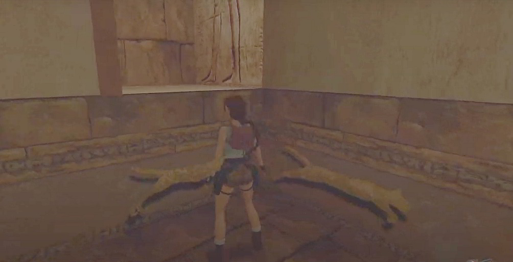 Freude... Oben gehst du in den Gang, wo ein Panther wohnt. Schieße, bis er kommt, und ziehe dich dann auf die Mauer hoch. Hier findest du zwei Nischen mit Wertsachen und kommst wieder auf die große Treppe. Hinweis: in der Remastered Version sah ich in den Nischen überall Gitter, aber durch das erste Gitter konnte ich hindurch gehen! Jetzt geht es auf dem bekannten Weg zurück zu der Stelle, wo du vorhin die Munition gesehen hast, zu der du nun springst. Dort springst du zu dem Mauerspalt hoch, hangelst nach links, ziehst dich hoch und dann rechts nach oben. Hinter der Katzen-Statue findest du einen Hebel (drücken) und kannst jetzt die große Treppe wieder hinunter gehen. Unten ist jetzt rechts eine Tür geöffnet, durch die du in einen Raum mit Palmen kommst (dabei könnte dir ein Panther begegnen). Gehe dort in der rechten, vorderen Ecke in den Gang und schußbereit weiter, bis dir ein Krokodil begegnet. Im nächsten Palmen-Raum liegt rechts ein kleines Medipack und nebenan beim Becken ein großes. Wenn du es nimmst, kommt ein zweites Krokodil. Erschieße also vorher das Krokodil im Wasser, um dort in Deckung gehen zu können. Danach drückst du den Unterwasserhebel (am Boden des Beckens ist übrigens ein weiteres "uraltes" Lara Abbild) und gehst wieder an Land, aber Vorsicht, jetzt läuft ein Panther herum, also wieder zurück ins Wasser. Danach kannst du dich im ersten Palmen-Raum durch eine der beiden Öffnungen nach oben ziehen. Die Falltür dort öffnet sich, wenn du auf den Block mit dem Gesicht steigst. Unten findest du zwei Wertsachen. Laras uraltes Abbild (rechts) Klicken zum vergrößern! Gang mit 3 Türen und 6 Hebeln Erfolg: "Fallgrube" = Komm lebendig aus dem Fallenraum und hinterlasse ihn leer. Das ist die Tür mit den Totenköpfen, und in dem Link findest du etliche Anleitungen und Videos, und bevor ich das jetzt lange erkläre, also du mußt eine der Nischen beim Eingang erreichen, die dann da sind, und von dort aus beide Kollegen umhauen, und dann wieder raus hüpfen, und es ist in meinem entsprechenden Video zu sehen. Und die Geheimtür für Geheimnis 4 war dann immer noch kurz offen, und man hat dann zwei Kills mehr! Die automatische Tür führt dich in einen langen Gang mit drei Türen auf der rechten Seite und einer Geheimtür am anderen Ende. Öffne zunächst die mittlere Tür mit den beiden Hebeln. Über dem Eingang hängen Totenköpfe, die aufmerksame Laras abschrecken sollen, und der Raum ist tatsächlich eine Falle (du kannst es ja mal ausprobieren), aber durch Betreten öffnet sich kurz die Geheimtür am Ende des Gangs (sie bleibt auch für kurze Zeit geöffnet, wenn du im Gang nur auf den hellen Platten läufst und vorher die zwei Wertsachen [war zumindest in der originalen Version so] nicht aufnimmst). Gehe also zwei Schritte hinein, mache eine Rolle und laufe wie der Wind durch die Geheimtür, die sich hinter dir schließt und dir ein seltsames Gefühl der Einsamkeit gibt.