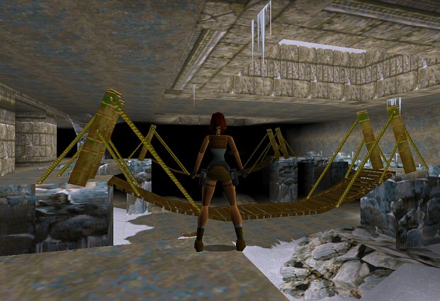 Du bist jetzt wieder in der Halle mit den Brücken. Klettere bei der Mumie nach oben und gehe zurück zur Bärengrube. Diesmal mußt du mit Anlauf auf die andere Seite der Grube springen. Das funktioniert so: gehe auf einem der beiden Vorsprünge bis zur Kante, dann zwei Schritt zurück, laufe los und drücke springen (das ist ein Sprung mit Anlauf, bei dem Lara etwas weiter als sonst springt). Hier ist der einzige Kristall in diesem Level in "Neues Spiel +". Auf der anderen Seite holst du links von der Treppe hinter der Säule ein kleines Medipack und gehst dann mit gezogenen Waffen die Treppe hinunter. Im nächsten Raum greifen dich zwei Wölfe an. In so einer Situation hilft nur seitlich und/oder vor und zurück springen, während du schießt. Gefunden von Melanie: sobald man durch die Tür in den anschließenden Raum gelaufen ist, macht man eine Rolle und läuft wieder zurück zur Grube, die man dann wieder mit einem Sprung mit Anlauf überwindet. (Dies sollte man tun, BEVOR die Wölfe einen erwischen können). Nun nur noch umdrehen und die Wölfe seelenruhig erledigen, ohne dabei Energie zu verlieren. Erfolg: "Das wurde aber auch Zeit!" = Sieh dir die uralten Zeitgeräte ganz genau an. Bei Geheimnis 3 ist an der Wand ein großes Relief, nahe hingehen, und Umschauen-Taste drücken, das ist Zeitgerät 1 von 2. Das zweite ist im Palast des Midas. Unten siehst du einen grün bewachsenen Vorsprung, den du mit Anlauf/Sprung von den Steinblöcken daneben erreichst. Hier verbirgt Geheimnis 3 mit einem großen Medipack. Kehre dann wieder zurück nach unten, wo du in einer Nische ein kleines Medipack findest. An der anderen Wand ist ein Hebel, der für kurze Zeit daneben die Ausgangstür öffnet. Drücke ihn, springe auf die kleine Mauer dazwischen, dann dort von der Kante mit Griff zum Block mit der Tür, wo du dich schnell hochziehst und hinaus läufst. SG1 Laufe mit gezogenen Waffen die Stufen bis nach oben, wobei du eine Pfeilfalle passierst und schließlich einen Wolf erlegst. Hier findest du zwei seltsame Bodenplatten (Erfolg), auf die du dich stellst und einbrichst. Gehe weiter in den nächsten Raum (nicht nach unten!) und springe mit Anlauf zur anderen Seite. Hier findest du ein Medipack, daß von einem Wolf bewacht wird, und weiter hinten einen Schalter, der den Ausgang öffnet. Kehre wieder zurück zu dem Punkt, an dem du hier gelandet bist und gehe die Felsen hinunter in die große Halle, um dann den Ausgang zu benutzen... Bravo, du hast das erste Level gemeistert, dir die wichtigsten Techniken angeeignet und einiges über die Prinzipien von Tomb Raider gelernt. Eines davon lautet, daß du jeden noch so abgelegenen Winkel erforschen mußt, das andere sind Schalter, Türen, seltsame Bodenplatten sowie Fallen und schließlich noch die Abwehr von unliebsamen Besuchern. Jetzt kann praktisch nichts mehr schief gehen... Statistik: Gegner (Kills): 14, Gegenstände: 7, Geheimnisse: 3, Neues Spiel + Kristalle: 1 Remastered Version Savegames kann man z.B. bei Stella herunterladen, oder bei mir im Forum, Und hier ist ein Savegame-Editor für die Remastered Version! Achtung! folgende Savegames sind nur für das originale (alte) Spiel! Download: savegame.0 das Ende dieses Levels. Mit der rechten Maustaste anklicken, speichern unter... wählen, entpacken und in C - TOMBRAID speichern. Speicherort Steam-Version: C:\Program Files (x86) \Steam \steamapps \common \Tomb Raider (I) \TOMBRAID - GOG-Version: C \ GOG Games \ Tomb Raider 1 \ TOMBRAID - Wenn du dort deine eigenen Savegames (savegame.0 usw.) siehst, bist du auch im richtigen Ordner! Download: gesammelte Savegames = ZIP-Datei von Level 1 bis 4. Anleitung Text ist enthalten! Auch ein Savegame-Editor. Also da sind jetzt etwas mehr Savegames (SG1 usw.) für dieses Level enthalten, falls du an einer schweren Stelle nicht weiter kommst. Bitte die darin enthaltene Anleitung lesen! Generelle sonstige Fragen/Antworten zu diesem ganzen Savegame-Zeug findest du hier. |