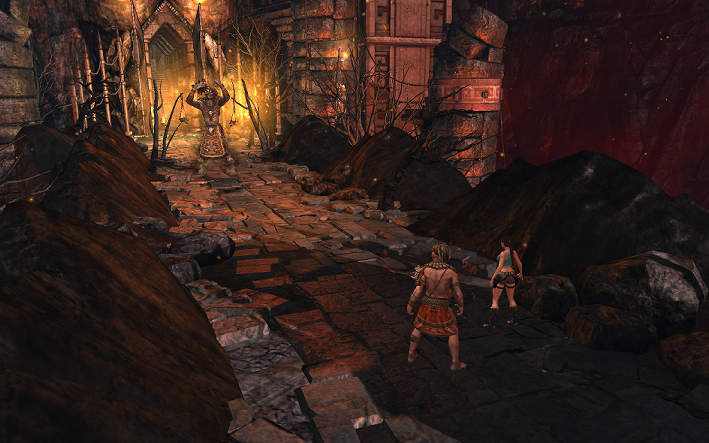 Lasse dich wieder in die Arena hinunter, und springe links auf die Brücke. Werfe deinen Haken an den goldenen Ring, und springe zur Wand. Dann läufst du an der Mauer hin und her, und springst zur Brücke ab, festhalten und hochziehen. Tip: Wenn Lara abstürzt, schnell wieder den Haken werfen! Werfe dann einen Speer in die Wand, auf den Teil mit dem Ring, springe hinüber, und hinauf zum roten Schädel 10/10 = Artefakt Jadeherz. Wie gesagt: schnell das Seil auswerfen, wenn du abstürzt! Dann springst du wieder auf die Brücke, vorsichtig und schnell zur nächsten Brücke, und über die große Lücke auf den nächsten Teil der Brücke. Nun gehst du wieder zum Haupttor...
