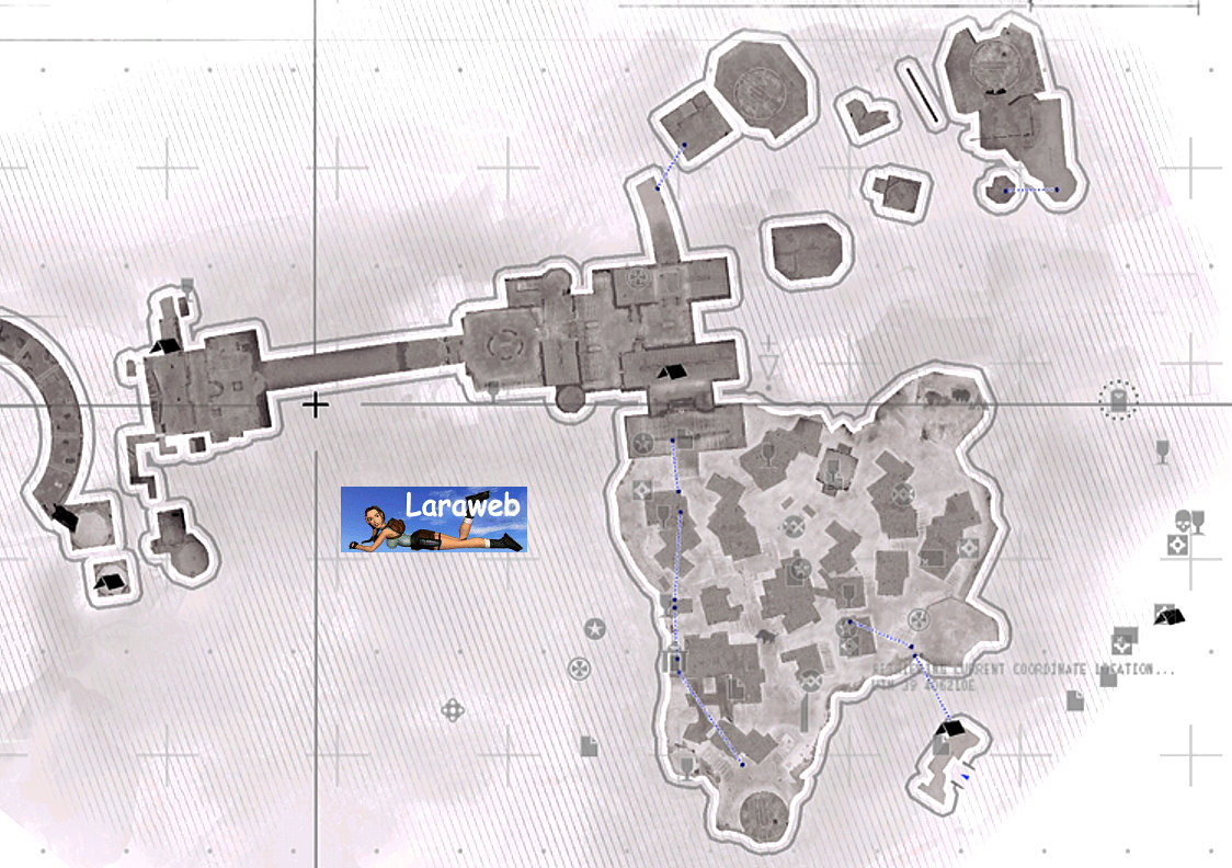 Worum geht's? Das ist jetzt die gefrorene oder verlorene Stadt, keine Ahnung, jedenfalls scheint sie unterirdisch zu sein, und gefroren, und da laufen unsterbliche Krieger rum, also wir sind hier wieder mal voll in der wunderbaren Welt der Schwerkraft, hätte ich jetzt beinahe in Anlehnung an den berühmten Monty Python-Film gesagt, aber nichts desto weniger trotz und überhaupt sind wir natürlich in der wunderbaren Welt der so herrlich realitätsnahen Computerspiele mit einzelnen Frauen, die ganze Armeen besiegen... Go, Lara, go! Die gefrorene Stadt (oder verlorene Stadt, keine Ahnung) Gehe weiter zum Basislager Grenze von Kitesch und nimm das Dokument. Savegame 22 = Beginn des nächsten Abschnitts (22. Slot in meinem 29 Slots enthaltenden 100% Savegame) Hier mal ein Einschub: du kannst in Lagern immer auf der Karte nachschauen, zu wie viel Prozent du die bisherigen Gebiete schon erledigt hast. Und dann kannst du mit der Schnellreise zurück in die dortigen Lager gelangen, und da sollte eigentlich mittlerweile alles eingetragen sein, was dir noch an Dokumenten und so weiter fehlt. Manches davon kannst du erst jetzt erreichen, nachdem du eine bessere Ausrüstung hast. Im Geothermalen Tal gibt es z.B. ein Dokument, das du erst mit den Kletterpfeilen erreichst, und auch das eine oder andere Bonusgrab erreichst du jetzt mit Hilfe des Atemgeräts. Also das kannst du jetzt noch holen, weil es dir natürlich letztendlich eine bessere Ausrüstung und mehr Fähigkeiten ermöglicht, die dir sicher im weiteren Verlauf des Spiel noch nützlich sein können. Siehe auch meine Tips für die Schnuffies weiter unten!