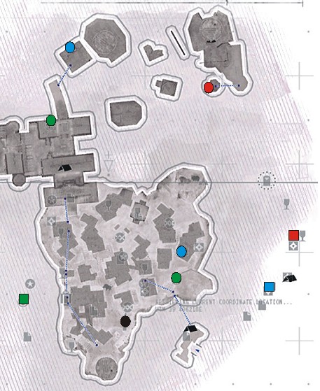 schau einfach selber. Herausforderungen: bis zum Tor sollten es (wahrscheinlich) 4 Statuen, 4 Glocken und 6 Fahnen sein. Burn, Baby, Burn kommt erst später, denke ich mal. Die vierte Statue ist praktisch kaum zu sehen. Du mußt dich auf das große Dach direkt gegenüber vom Ausgangstor stellen. Wenn du dann zum Tor schaust, sieht du links davon oben ganz in der Ferne eine sehr kleine Statue, die auch nicht mit RS leuchtet, aber wenn du drauf zielst, wird das Fadenkreuz rot. Und ich konnte sie nur mit dem Gewehr erwischen. Die anderen drei sind leicht zu finden. Das Zeug leuchtet ja mit RS. Und ich hatte hier alles andere komplett gefunden, bis auf ein Wandgemälde und drei Relikte. Das nur mal so zur Info. Und da ist ein Relikt unten auf der Karte, wo ich nicht weiß, wie ich das erreichen soll. Vielleicht kommt man da später hin. Herausforderungen: Klicken zum vergrößern! Erobere das Katapult Wenn du fertig bist mit den Nerven bzw. der Sucherei, gehst du die Treppen zu dem großen Tor hinauf, und wirst dann von einem Katapult beschossen. Du mußt dich jetzt nach ganz unten auf der Karte zu diesem Turm vorkämpfen, auf dem das/der Katapult steht, wobei dir ein paar Schnuffies begegnen, immer in Dreiergruppen. Da ich nur noch Pfeile hatte, habe ich sie alle mit der Axt umgehaut, das funktionierte eigentlich prima, bzw. im ersten Versuch. Dann hatte ich auch wieder Munition, weil man die natürlich danach plündern kann, da liegen immer so kleine rauchende Päckchen am Boden. Ansonsten mußt du einfach fleißig rumlaufen, damit du nur wenig vom Katapult getroffen wirst. Und du mußt dich zunächst direkt unten an diesen Turm hinstellen, da bist du dann erst mal in Sicherheit. Klettere dann hier gleich auf das Haus am Turm hinauf, und du siehst jetzt Holzwände, in die du Kletterpfeile schießen kannst. So gelangst du zu der ersten und schließlich zweiten Holzwand in der Ecke, von wo aus du weiter an die Eiswand springen kannst, an der du zum Katapult-Turm hinauf klettern kannst. Hier mußt du erst schnell noch zwei Schnuffies beseitigen, und du machst einen kleinen Abstecher zu dem Eingang in der Ecke gleich gegenüber, den du aber eventuell erst noch aufschießen mußt. Hier hängt die letzte Glocke für diese Herausforderung, und du kriegst auch das Dokument, das du vorher schon gesehen hast. Nun springst du wieder zurück zum Katapult, und dann nach ganz oben zu der kleinen Kurbel...