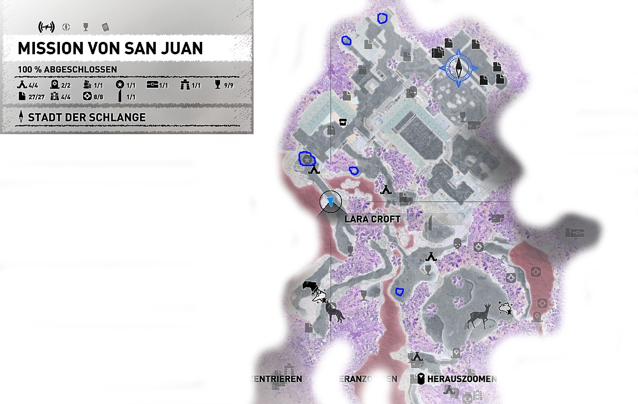 Achtung! Falls dir meine Lösung noch etwas unklar oder nicht genau genug beschrieben ist, kannst du auch meine Videos anschauen. V 33: heißt z.B., daß hier mein Video Nummer 33 beginnt. SG 14 heißt, das hier ist das vierzehnte Savegame (Spielstand) von meiner SG-Sammlung. F5 drücken, zum aktualisieren, um die neueste Version dieser Seite zu sehen! Und für Ergänzungen und Hinweise bin ich wie immer dankbar! Jeder erhält als Belohnung einen dreiwöchigen Fußmarsch nach Bad Wörishofen! Letzte Aktualisierung: 23.07.2021 21:54 Worum geht's? Was jetzt noch fehlt, ist ein Missionsdorf im Duschgel, ähm Dschungel, und wenn jetzt Bud Spencer und Terence Hill als Missionare verkleidet um die Ecke kommen, es würde mich nur unwesentlich in Erstaunen versetzen... SG 14 - V 33: Via Veritas - Mit Abbys Freundin sprechen: vorne beim Jeep ist gleich mal die Herausforderung: Flaggen hissen, oder so ähnlich, und das Basislager: Missionstor. SG 51 HC Es gibt auf dem ersten Marktplatz eine Händlerin mit Waffen, Waffenzubehör, und größeren Munitionstaschen. Ich habe erst mal die Gegend unten auf der Karte erkundet, und ein Bonusgrab: Baum des Lebens gefunden. Da gibt es erst mal das Basislager: verlassenes Kloster, eine Händlerin, eine Forschertasche, und eine Archivarkarte. V 34: Lager : Bergkatakomben. Wenn man dann weiter hinunter in das Bonusgrab geht, kommt ein Punkt, wo man einen Feuerpfeil auf diese grüne Giftwolke schießen muß, und dann muß man schnell hinauf klettern. Nun arbeiten wir uns weiter voran, und dann muß man "auf die Plattform". Dazu muß man einen Feuerpfeil in die dortige Giftwolke schießen, und dann schnell auf diese Plattform springen, und dann kann man weiter springen. Und mit dieser Technik geht es dann weiter, es sollte recht schnell klar sein. Bei der zweiten Plattform sollte man schnell gleich weiterspringen. Wenn man es schließlich bis ganz oben geschafft hat, ich kann das jetzt wirklich nicht mehr genau reproduzieren, dann erhält man die Fähigkeit: Gunst des Sonnengottes = Gesundheit wird einmal wieder hergestellt. Also da sind am Schluß zwei Plattformen an einem Pendelbalken (der gelb leuchtet per Instinkt), oder so, man muß auf die andere, die weiter von der Gaswolke entfernt ist, und von da aus einen Feuerpfeil in die Gaswolke schießen, dann geht die runter, oder? Und von dort aus geht es dann weiter, und hinauf zur Belohnung, wenn ich mich recht erinnere. Also man kann hier nicht wirklich Fehler machen! Man muß sich einfach immer weiter vorarbeiten, bis man mit eingeschaltetem Überlebensinstinkt diesen großen Pendelbalken mit zwei Plattformen dran gelb leuchten sieht, das ist praktisch das Ende des Weges, bzw. das sind die letzten Plattformen. Hinweis: der Weg aus allen Bonusgräbern wieder raus ist nicht immer sofort ersichtlich, oder super einfach (aber gleich in der Nähe!), sollte aber klappen, und man kann in allen Bonusgräbern nicht direkt Fehler machen, so daß man "gefangen" wäre, und neu anfangen müßte, es ist immer noch alles machbar, Frau Nachbar! Also an sich ist der Weg aus den Bonusgräbern raus natürlich einfach und ersichtlich. Jedenfalls einfacher, als der Weg rein. SG 52 HC = am Lager Bergkatakomben. V 35: So, dann habe ich mal in dem Missionsdorf weiter rumgesucht, man kann da viel Zeug finden, und mit Leuten quatschen, es gibt wieder eine Forschertasche und Archivarkarte zu holen, und dergleichen. Dann mal weiter zum Symbol auf der Karte mit der Hauptmission. Da findet man gleich in der Nähe ein neues Basislager: Flußufer, mit weiteren schicken Sachen in der Nähe, und einen grün leuchtenden Typen mit der Nebenaufgabe: Mysterien der Mission. Da muß man erst mit ein paar Leuten und Kindern reden, und dann ein Überlebensversteck in dem grünen Kreis auf der Karte finden, es ist bei dem kleinen runden Brunnen am Rand. Dann wieder mit den Kindern reden, dann mit der Frau, und jetzt leuchten ein paar Grabkreuze grün, man folgt diesen Kreuzen, also es geht wieder zum Beginn des Levels, und heiter weiter, und Achtung, da sind auch Wölfe! Aber man findet das letzte Kreuz, drücken, und rein. Da drin gibt es u.a. eine Krypta, die wie üblich ein Outfit (Kantus vergoldete Weste) erbringt. Es gibt hier ansonsten einiges zu sammeln, viele Fallen, und man muß einen schmalen Mauerspalt finden, damit man überhaupt erst mal weiter kommt. Und für den Rest der Nebenaufgabe muß ich jetzt kein Bild malen, bzw. danach muß man den Eingang zum Grab finden, da ist ja ein grüner Kreis auf der Karte. Und das ist jetzt anscheinend auch gleichzeitig ein: V 36: Bonusgrab: durstige Götter. Also man muß zu diesem See finden, nämlich beim Jaguar durch das Loch im Felsen klettern, oder man kommt auch anders hin, und dann in den Gang tauchen, und weiter. Man kömmt bei einem Wandgemälde raus, und Lara sagt, daß sie den Raum trockenlegen muß, man kann von dort aus oben eine Wand per Seilpfeil wegziehen. Jetzt kann man in den Totenkopf reingehen, und es folgt eine gefährliche Rutschpartie, wo man ausweichen und springen muß, denke ich mal. Ich bin dann durch den Mauerspalt getaucht, und habe das Floß abgeschnitten, so kann man zum Basislager: Flutbecken hinauf springen. Danach weiter gespringt, und du kommst zu einer Halle mit bösen Fischen. Man muß aber schnell das Floß unter Wasser abschneiden. Sollte klappen. Ich habe dann schnell noch ein weiters Floß abgeschnitten, und von diesem aus kann man zum nächsten Ufer springen, wo Lara anmerkt, daß sie den Wasserstand senken muß. Es gibt hier einen Hebel, den habe ich gezogen, und damit fließt da Wasser in dieses Gewicht, oder was das sein soll, und der Wasserstand senkt sich etwas. Dann habe ich einen Seilpfeil von dem Wasserrad zu diesem Ring geschossen, und bin ins Wasser gefallen, mehr oder weniger unfreiwillig.