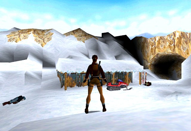 Jetzt geht es mit Vollgas (Handlungstaste) auf die andere Seite und in die nächste Höhle. Löse dort zu Fuß vorsichtig die ersten Schneebälle aus, denn dort führt der Weg auf die andere Seite (mit Vollgas immer leicht schräg nach oben lenken). Gehe von dort wieder zurück zum Abgrund. Springe auf das kleine quadratische Schneepodest und dann auf den Abhang über der vereisten Leiter (festhalten), an der du abwärts zu einem Höhleneingang kletterst. Dort findest du einen Schlüssel. Das Loch im Boden führt zu einer Eiswand, hinter der dich ein Revolverheld erwartet. Gehe danach vorsichtig zu dem Hebel mit Eiszapfen darüber, um die Holztür zu dem Tal unter der großen Schanze zu öffnen. Anmerkung: das sollten jetzt hier alle Eiszapfen in diesem Level gewesen sein... Am anderen Ende des Tals liegen links in einer Grube Granaten, springe aber zuerst mit Anlauf auf die Nische darüber, um drei Samtpfötchen anzulocken und zu erlegen. Schnappe dir die Granaten und laufe zurück zum Taleingang, um auf der langen Eisleiter hochzuklettern. Jetzt mußt du wieder über die schmalste Stelle des Abgrundes mit Anlauf/Griff zurück zu deinem Schneemobil springen. Fahre den Gang weiter und biege rechts ab, bis du in eine Höhle mit Eissee kommst. Das Schloß am Eingang links schließt die Brücke darüber, so daß du bis zu einem Lawinenwarnschild fahren kannst. Ja, diese Warnung ist ernst gemeint, also mit Vollgas vorbei, dann biegst du nach links (Blinker nicht vergessen) und bretterst ebenso zügig über ein großes Loch (gleich danach bremsen), wodurch du außerdem in der Höhle einen lautstarken Erdrutsch ausgelöst hast. Dadurch kommt in der Mitte der Höhle der weiße, schwer erkennbare Schlüssel für die Skihütte zum Vorschein. Bereite dich aber, bevor du ihn aufnimmst, auf ein heißes Gefecht vor, denn ein bewaffnetes Schneemobil hat anscheinend auch Interesse (laufe mit gezogener M16 oder Uzi über den Schlüssel und springe auf den kleinen Schneehügel rechts vom Schlüssel oder zurück in die Mitte der Höhle, von wo aus du das um dich kreisende Mobil begrüßen kannst, dabei aber immer kräftig schießen, sonst will es dich überfahren). SG5 Mit dem Skihüttenschlüssel in der Tasche fährst du mit deinem Schlitten den ganzen Weg, den du gekommen bist, zurück. Beim letzten Abgrund vor dem Schanzenrundkurs mußt du die mittlere niedrige Rampe treffen oder die linke nehmen. Kurz vor der Hütte steigst du wegen einer Kante ab (hier wollen zwei Bernhardiner dein Fahrzeug begutachten) und gehst zu Fuß weiter. Sperre die Hütte auf, sammle diverse Ausrüstungsgegenstände ein und stelle dich vor den Hebel für die Holztür rechts von der Hütte. SG6 Garantiert kommen da wieder Bösewichte heraus! Stimmt, und zwar viele. Eine Möglichkeit besteht darin, sich nach dem Entriegeln in Richtung Hütteneingang zu drehen und mit dem Granatwerfer Grüße zu verschicken, oder du läufst hurtig zurück in die Grotte, wo du nach einigen Metern in Sicherheit bist. Gehe danach durch die geöffnete Holztür bis zu dem Höhleneingang und schaue sie dir gut an. SG7 Sobald du dich herunterläßt und losgehst, kurvt ein unfreundliches Schneemobil herum und will dich überfahren. Laufe (und springe, wegen der Vertiefungen) also geradewegs bis hinter den großen Eisblock, den du von dort aus besteigen und so den Fahrer mit deiner M16 bekannt machen kannst. Er wird dir daraufhin freundlicherweise sein Fahrzeug zur Verfügung stellen, mit dem du die Höhle verläßt. Aber Vorsicht, hier kommt ein Abgrund, den die schwere Kiste nicht überspringen kann, erfolgreich ist jedoch eine Methode, die in keiner Fahrschule gelehrt wird: benutze die linke Eisschräge und lenke immer leicht in Richtung Wand (wer nichts von dieser nicht gerade materialschonenden Fahrweise hält, springt auf die Schräge und hangelt hinüber). Wenn du nach einigen Totalschäden (es geht tatsächlich!) die andere Seite erreicht hast, steigst du dort die Eisleiter hinab (auf der rechten Seite der Leiter halten) und machst kurz nach der Landung einen Salto links (rate mal, wieso?). Mit dem goldenen Drachen im Gepäck setzt du deine Fahrt fort bis kurz hinter den Ausgang der Höhle. SG8 Hier hast du zwei Möglichkeiten. Entweder, du steigst ab und kletterst auf die Mauer rechts, um die zwei Schneemobile zu bearbeiten, oder du drehst dein Schneemobil auf der Stelle und feuerst mit der Handlungstaste auf die dich umkreisenden Schurken. Jedenfalls fährst du danach SG9 den Abhang hinunter (mit einem Schneemobil der Schurken, falls du zu Fuß gekommen bist) und schiebst unten links den grauen Felsblock dreimal nach hinten. Laufe mit gezogenem Gewehr gleich wieder rückwärts, weil du zwei Fieslinge angelockt hast (eventuell den Abhang wieder hinauf laufen). Fahre in der neuen Höhle über die Kante in den Abgrund in Richtung Wasser und springe während des Fluges ab. In dem See ist links ein Steg... SG10 Gegenstände (u.a.): zwei Schlüssel, drei Geheimnisse = Drachen (4 x Uzi-Munition, wenn du alle drei findest). Statistik: Gegner (Kills): 33, Gegenstände: 31, Geheimnisse: 3 Remastered Version Savegames kann man z.B. bei Stella herunterladen, oder bei mir im Forum, Und hier ist ein Savegame-Editor für die Remastered Version! Achtung! Die folgenden Savegames sind nur für das originale (alte) Spiel! Download: savegame.0 das Ende des vorigen Levels. savegame.1 der Beginn dieses Levels. Mit der rechten Maustaste anklicken, speichern unter... wählen und in C - Programme - Core Design speichern, oder siehe hier. Speicherort Steam-Version: C:\Program Files (x86)\Steam\steamapps\common\Tomb Raider (II) - GOG-Version: C \ GOG Games \ Tomb Raider 2 - Wenn du dort deine eigenen Savegames (savegame.0 usw.) siehst, bist du auch im richtigen Ordner! Download: gesammelte Savegames Level 11. Anleitung Text ist enthalten! Auch ein Savegame-Editor. Also da sind jetzt etwas mehr Savegames (SG1 usw.) für dieses Level enthalten, falls du an einer schweren S