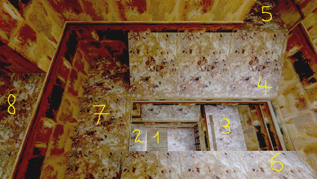 Die neuen TR 2 Remastered Erfolge, die man hier (in diesem Level) kriegen kann, stehen nun in der folgenden Lösung, die restlichen Erfolge stehen hier. F5 drücken zum Aktualisieren dieser Seite, die letzte Aktualisierung (Datum) steht rechts unten. Zeitspiel: Speedrun (Level möglichst schnell abschließen) Tomb Raider Remastered Steuerung. Worum geht's? Du kämpfst dich durch den Eispalast, und kommst wieder zu dem gefrorenen See, den du nun auftauen kannst, und darin einen nützlichen Gonghammer findest. Jetzt brauchst du nur noch den passenden Gong, um ein Monster aus dem Schlaf zu wecken. Erfolg: "Öffentlichkeitsdienst" = Lasse alle Eiszapfen in den Levels "Tibet" herabstürzen, ohne verletzt zu werden (Level 11, 13, 14) Erfolg: "Pausenglocke" = Läute die vierte Glocke und erreiche die Leiter, während du nicht häufiger als 4-mal auf die Schrägen trittst. In dem Schacht (Bereich) mit der letzten Glocke sind insgesamt vier Schrägen. Bis dahin kann man alles normal machen. Anleitung: rückwärts auf die kleine Schräge 2 springen (siehe Bild), so daß Lara vorwärts auf das Sprungbrett 1 fällt, und dabei die Handlungstaste gedrückt halten, Lara landet dann auf der Ebene 3. Hier auf die Schräge 4 hochziehen, und rückwärts auf die Schräge 6 springen, dabei die Pistolen ziehen. Wieder vor springen und auf die Glocke 5 schießen, danach Lara wieder runter fallen lassen auf die Ebene 3. Von dort wieder auf den Boden runter lassen. Nun mit gedrückter Handlungstaste vorwärts auf das Sprungbrett 1 laufen, Lara landet auf der Ebene 7 (oder an der dortigen Kante festhalten und hochziehen). Nun nur noch bei 8 die Leiter hinauf klettern und fertig... Blick von oben in den Schacht Klicken zum vergrößern! SG1 Höflich, wie du bist, läutest du vor dem Eintreten an der Glocke (mit Pistolen). Drinnen gehst du immer rechts herum bis vor das Sprungbrett (das sind die helleren Quadrate im Boden) unter dem kleinen Loch in der Decke und läufst darüber, was dich nach oben zu einem Medipack katapultiert. Wieder unten siehst du hinter dem anderen Sprungbrett in dem Spalt eine weitere Glocke. Laufe mit gezogenen Waffen auf das Brett und schieße im Flug darauf. Wenn du triffst (ding dong), hebt sich unten das vordere schwarze Gitter. Jetzt läufst du über eines der beiden zusammenliegenden Bretter in Richtung des gerade geöffneten schwarzen Tores, springst nach oben an die Kante (Handlungstaste drücken, festhalten) und ziehst dich hoch in die zweite Etage. Dort findest du Munition und einen Hebel, steige dann rechts eine Etage tiefer und warte gut bewaffnet auf drei Yetis. SG2 Danach springst du in die Käfigöffnung mit dem Medipack (du kannst die drei Yetis auch von dort aus erlegen, was sicherer ist) und läufst mit gezogener Waffe vor bis ans Ende und gleich wieder zurück, um noch einen Yeti hinter der Ecke herauszulocken und den dortigen Hebel zu schalten, der drei Bretter hochklappt. Zurück in dem Gang mit dem toten Yeti ziehst du