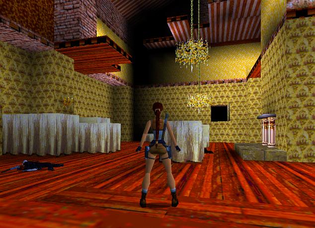 Schiebe nach getaner Arbeit den Steinblock im Kamin zweimal nach hinten, um so einen Gang mit Mäusen zu erreichen. Die seltsamen Gebilde auf der Rutsche erweisen sich als höchst ungesunde Messer. Springe schräg über das erste ins Wasser und ziehe dich auf die Holzplattform, die das Feuer kurz ausschaltet. Springe von der Kante der Plattform, die am weitesten von den Flammen entfernt ist, ohne Pause bis auf die andere Seite. SG7 Kronleuchtersaal Erfolg: "Ein Umzug ändert nichts daran, wer du bist" = Erhalte den Bibliothek-Schlüssel, ohne Kerzenleuchter zu bewegen. Das ist recht einfach. Oh Wunder. Die nächste Tür öffnet sich von selbst. Ziele sofort auf den Schützen im Saal dahinter und dann auf die Hunde, bevor du hinabsteigst. Du befindest dich im allseits bekannten und beliebten Kronleuchtersaal. Ziehe dich auf den Block unter dem ersten Leuchter und springe zu ihm hoch. Von dort erreichst du mit Anlauf/Griff die Fenster und einen Hebel für eine Bodenklappe und ohne Anlauf wieder den Leuchter. Dann geht es mit Anlauf/Griff zur zweiten Lampe und hier nach rechts auf die Holzplattform mit Hebel für das Bild. Zurück auf dem zweiten Leuchter folgt nun (wer hätte das gedacht) der dritte, wo du dich auf den Vorsprung (mit Mäusen) hochziehst und so den Dachbalken erreichst, an dem du nach rechts hangelst, hinaufsteigst und mit Anlauf auf die andere Seite des Daches gelangst. Rechts hinter der Mauer lauert ein Prügelknabe. Diese Mauer führt zur anderen Seite des Balkens und der dortige Hebel ändert die Höhe der Leuchter. Lasse dich vorsichtig auf den ersten (jetzt höchsten) Leuchter herab und springe ohne Anlauf auf den zweiten und dritten (kurzer Sprung mit Handlungstaste), von dem aus du mit Anlauf/Griff den Schlüssel in dem geöffneten Bild erreichst und zum mittleren Leuchter zurückkehrst. Springe mit Anlauf zu den Fenstern (einschießen) und lasse dich in dem Schacht auf der Rückseite des Kamins hinab. Der Unterwasserhebel öffnet die Tür ins nächste Becken, in dem in der Ecke der Zugang zu einem Unterwasserlabyrinth liegt. SG8 Tauche nach rechts und geradeaus durch den Mauerspalt, bis du Granaten, den goldenen Drachen und einen Hebel findest, den du als erstes ziehst, um über ihm Sauerstoff tanken zu können. Hole danach die anderen Sachen und tauche zurück zu dem ersten Becken, um mit dem Schlüssel die Bibliothek zu öffnen. SG9 Bibliothek Tritt ein, bring Glück herein (von vorn kommt ein Schläger) und gehe geradewegs in den ersten Raum, wo du am Ende auf das Bücherregal kletterst (Mäuse) und den Hebel betätigst. Kehre mit gezogenen Waffen in die Eingangshalle zurück, in der ein Schütze herumläuft. In dem jetzt geöffneten zweiten Raum besteigst du die beiden Regale und schießt das oberste Fenster ein. Rutsche das rote Vordach hinab und springe kurz vor Ende nach vorn, um auf dem Balkon zu landen. Von dort geht es über das Ziegeldach zur Steinmauer und am rechten, grünen Ende mit Anlauf/Griff auf das Dach der Holzhütte. Erfolg: "Bartolis Geheimversteck" = Finde die versteckten Uzis im Bootshaus. Auf der anderen Seite des Daches ist eine Steinmauer, auf die du mit gedrückter Handlungstaste springst, und hinter der die Uzis im Wasser liegen. Klettere zurück und betrete die Holzhütte (Vorsicht Schläger), um den Sprengschlüssel zu holen. Tauche dann zu der Holztür gegenüber, die sich von selbst öffnet, allerdings steht dahinter ein Schütze (Granatwerfer empfehlenswert). Durch die Fenster erreichst du wieder die Eingangshalle der Bibliothek SG10 und öffnest mit dem Hebel die letzte Tür, hinter der zwei Schützen auftauchen (schweres Gerät und seitlich springen). Draußen im Hof ist eine automatische Tür. Schwimme nach links, um eine Steinmauer zu besteigen (Mäuse), der du bis zu einem Ziegeldach folgst, dort sitzt hinter den Scheiben der grüne Drache. Kehre dann zurück zum Sprengzünder SG11 auf der Mauer, um Bartolis hübsches Häuschen in die Luft zu jagen. Du siehst leider nichts von der schönen Explosion, auch nicht, daß über dir plötzlich jemand Schießübungen macht. Springe also sofort ins Wasser und tauche geradewegs zu der Ruine, in der du bis ganz oben kletterst und den Gang entlang bis zu der Rutschbahn gehst... SG12 Hinweis: Du kannst am Dach entlang hangeln, und dich auf den Balkon fallen lassen, wo der Schütze war, aber er hat keine Wertsachen dabei. Gegenstände (u.a.): Waffe: Uzi (und *Automatik, falls du sie noch nicht hast), zwei Schlüssel, drei Geheimnisse = Drachen, wenn du alle drei Drachen findest, erhältst du zusätzlich vier Schachteln Schrotflinten-Munition. Statistik: Gegner (Kills): 37, Gegenstände: 28, Geheimnisse: 3 Remastered Version Savegames kann man z.B. bei Stella herunterladen, oder bei mir im Forum, Und hier ist ein Savegame-Editor für die Remastered Version! Achtung! Die folgenden Savegames sind nur für das originale (alte) Spiel! Download: Savegame.0 das Ende des vorigen Levels. Savegame.1 der Beginn dieses Levels. Mit der rechten Maustaste anklicken, speichern unter... wählen, entpacken und in C - Programme - Core Design speichern, oder siehe hier. Speicherort Steam-Version: C:\Program Files (x86)\Steam\steamapps\common\Tomb Raider (II) - GOG-Version: C \ GOG Games \ Tomb Raider 2 - Wenn du dort deine eigenen Savegames (savegame.0 usw.) siehst, bist du auch im richtigen Ordner! Download: gesammelte Savegames = ZIP-Datei von Level 1 bis 3. Anleitung Text ist enthalten! Auch ein Savegame-Editor. Also da sind jetzt etwas mehr Savegames (SG1 usw.) für dieses Level enthalten, falls du an einer schweren Stelle nicht weiter kommst. Bitte die darin enthaltene Anleitung lesen! Generelle sonstige Fragen/Antworten zu diesem ganzen Savegame-Zeug findest du hier. Auf meiner
