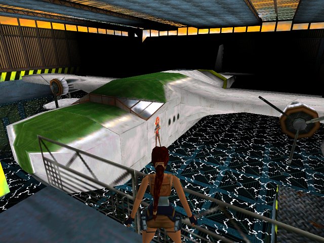 Übrigens: im folgenden Kontrollraum sind ein paar "Eastereggs". Also Ostereier, bzw. Sachen, die da versteckt wurden, damit sie jemand an Ostern... Fahre mit der Kamera (F3 am PC) zu den Monitoren. Einer zeigt einen Text mit der Forderung der Fans, Tomb Raider zu remastern, und daß alle Stimmen gehört wurden, jetzt haben wir den Schlamassel! Ein anderer Monitor zeigt abwechselnd bzw. zufällig die Erscheinungstage (Datum) von TR 1 bis 4, und ein weiterer zeigt eine Animationssequenz der rennenden Lara. Die Dame auf dem Wasserflugzeug (siehe Bild oben) soll übrigens Barbarella sein, die war aber schon in der alten Version da, und ich weiß nicht, ob das als Easteregg zählt... Schiebe und ziehe die Kiste auf der linken Seite zur Mitte des Raumes, bis sie unter der Wandöffnung steht. Springe mit Anlauf von der anderen Seite auf die Kiste und dann mit Griff (etwas schwierig, aber es geht) in die Öffnung. Dort wartet um die Ecke ein Hobbyschütze (Automatik empfohlen). Betätige im folgenden Kontrollraum links den unauffälligen Schalter, der das erste Wasserbecken füllt und kehre dorthin zurück (von der Öffnung herablassen). Schwimme durch das Becken und steige drüben heraus, springe über die Rohre nach rechts auf den grauen Block und betätige dort einen weiteren Schalter. Kehre zurück in den Kontrollraum SG6 und lasse dich in die jetzt offene Bodenluke hinab, wo eine Schräge nach unten führt. Laufe dort nach links zum Ende des Stegs, springe mit Anlauf/Griff nach rechts und laufe weiter, bis du in das Wasser fällst und bei dem Pfeiler links in der Ecke an der gelben Seite an Land gehst, von wo aus du die beiden Sporttaucher versenkst. Hier führt eine Leiter an der Wand auf den nächsten Steg, von dem du mit Anlauf/Griff zu einem Bösewicht springst, der deine Schrotflinte geklaut hat. SG7 Dann geht es mit Anlauf (vorher, wenn möglich, den zweiten Schurken erschießen) weiter auf den nächsten Steg, von wo aus der dritte Unhold gut im Visier liegt. Bei ihm ist ein Fenster (einschießen) mit der grünen Schlüsselkarte, zu dem du über die Stege an der Wand und an dem Pfeiler gelangst. Springe mit der Karte im Gepäck in das Wasser, hole den goldenen Drachen und gehe gleich wieder baden, um die zwei Schlägertypen von dem anderen Pfeiler aus zu erlegen (einer hat ein Medipack bei sich). Jetzt geht es wieder über die Leiter von vorhin zurück zu dem zweiten Schurken, SG8 dort ist bei dem Steg an der Wand eine Öffnung. Sie führt über einen langen Gang und eine Leiter zu einem Loch im Boden mit Prügelknaben darin und schließlich zum Kontrollraum, SG9 wo nun die grüne Karte zum Einsatz kommt. Schalte danach wieder den Wasserhebel gegenüber, um das andere Becken zu füllen und tauche dort in den Gang (der Hebel öffnet das Gitter am Ende), um eine Treppe zu erreichen... SG12 Gegenstände (u.a.): 3 Schlüsselkarten, Pistolen, Automatikwaffe, Harpune, Schrotflinte, 3 Geheimnisse = Drachen. Hinweis: wenn du alle drei Drachen gefunden hast, kriegst du die Uzis. Statistik: Gegner (Kills): 20, Gegenstände: 31, Geheimnisse: 3 Remastered Version Savegames kann man z.B. bei Stella herunterladen, oder bei mir im Forum, Und hier ist ein Savegame-Editor für die Remastered Version! Achtung! Die folgenden Savegames sind nur für das originale (alte) Spiel! Download: savegame.0 das Ende des vorigen Levels. savegame.1 der Beginn dieses Levels. Mit der rechten Maustaste anklicken, speichern unter... wählen, entpacken und in C - Programme - Core Design speichern, oder siehe hier. Speicherort Steam-Version: C:\Program Files (x86)\Steam\steamapps\common\Tomb Raider (II) - GOG-Version: C \ GOG Games \ Tomb Raider 2 - Wenn du dort deine eigenen Savegames (savegame.0 usw.) siehst, bist du auch im richtigen Ordner! Download: gesammelte Savegames Level 5. Anleitung Text ist enthalten! Auch ein Savegame-Editor. Also da sind jetzt etwas mehr Savegames (SG1 usw.) für dieses Level enthalten, falls du an einer schweren Stelle nicht weiter kommst. Bitte die darin enthaltene Anleitung lesen! Generelle sonstige Fragen/Antworten zu diesem ganzen Savegame-Zeug findest du hier. Auf meiner