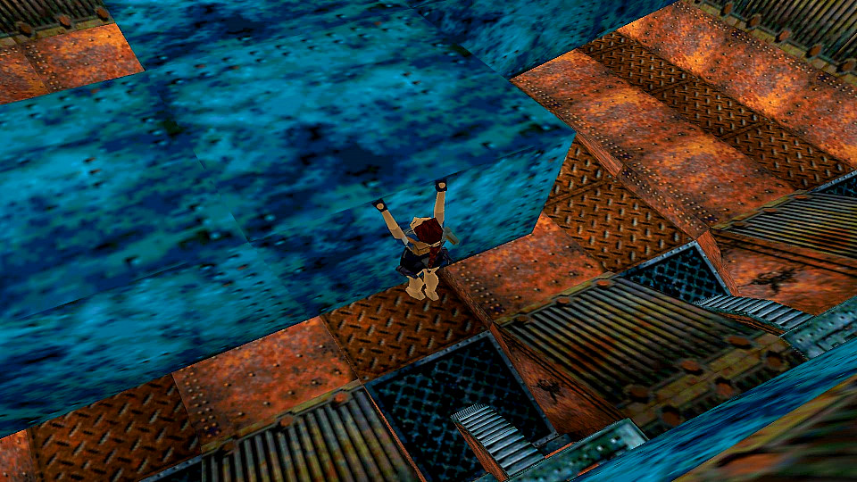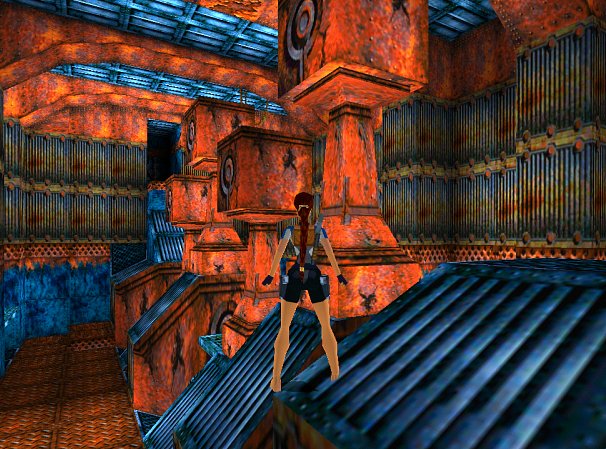 Erfolg: "Aufmerksamkeitsbelohnung" = Finde im Level "Die Quartiere" eine Abkürzung, um zu vermeiden, dass du einen Raum mit zwei Hebeln betrittst und einen Block auf die blaue Bahn bewegen musst. Das ist diese Abkürzung. Der Erfolg ploppt auf, wenn man aus der großen Halle rausgeht, und in den nächsten Bereich... Abkürzung: du kannst von dem Steg in der Mitte gleich nach oben zu dem blauen Balken bzw. Steg springen, siehe Screenshots. Dann sparst du dir das alles, und es geht gleich im nächsten Absatz weiter, also beim goldenen Drachen. Klicken zum vergrößern! Erfolg: "Keine unnötigen Bewegungen" = Zerbrich keine Bodenpaneele, um im Level "Die Quartiere" an das goldene Geheimnis zu gelangen. Einen Schritt vor der Kante aus dem Stand hinunter springen zum goldenen Drachen, mit gedrückter Handlungstaste, und die Handlungstaste gedrückt halten, dann landet Lara dort, und hebt den Drachen gleich auf, sollte klappen. SG4 Folge dem Gang und gehe nach links, wo dir ein Schläger begegnet. Im ersten Gang rechts ist ein Loch (mit Drachen) im Boden. Springe mit Griff zu der Öffnung darüber, wo dich der morsche Boden zu dem goldenen Drachen befördert (zuerst den Boden einstürzen lassen und dann herablassen). Gehe durch die Scherben und ziehe dich wieder hoch. Der Gang führt weiter zu einer Schräge. Rutsche hinunter und springe über den morschen Mittelteil. Links ist eine Pfütze mit Hering. Lasse den morschen Boden in der Ecke der Pfütze einstürzen und warte auf einen weiteren, bevor du hinabtauchst und den grünen Drachen holst. Dann geht es weiter in den "schrägen" Raum. Gehe zu den beiden Pfeilern mit dem brüchigen Boden dazwischen. Einer von ihnen hat eine Kante, an der du nach rechts hangeln kannst, diese mußt du erreichen. Springe also in die Grube mit dem brüchigen Boden, dann von der Ecke aus mit einem Salto rechts auf die andere Seite. Hier ist an der Wand eine erhöhte Kante, von der du neben dem Pfeiler stehend mit Anlauf/Griff leicht in Richtung des Pfeilers mit Kante springst und dort nach rechts hangelst, um dich hochzuziehen. Rechts oben hinter dem Pfeiler ist der Ausgang, der dich in einen hellen Saal bringt. Hier rückt von rechts ein Schütze an. SG5 Gehe dann die Rampe hinauf in den nächsten Raum, wo unten noch ein Schütze herumläuft. In der Ecke steht eine Kiste, die du herausziehst. Springe dann über das Geländer hinunter, gehe geradewegs weiter (zwei Schurken kreuzen) und springe links in die Grube, wo unter der Kiste ein Schlüssel liegt, aber Vorsicht, sobald du bei der Kiste bist, fängt oben jemand zu schießen an. Gehe also gleich an der Wand in Deckung und erledige ihn von unten aus. Mit dem Schlüssel geht es zurück und links die roten Stufen hinauf zu den zwei Glastüren, die sich nun aufsperren lassen (du kannst vorher noch nach rechts zum Ende des Ganges laufen und gleich wieder zurück, um einen dort wartenden Schläger zu erlegen, der wahrscheinlich sonst später noch mal unvermutet auftauchen würde). SG6 Wenn du hineingehst, kommt von rechts ein Schläger und später noch einer. Gehe die linke Treppe hinauf und in den Zuschauerraum, wo du auf der anderen Seite eine Öffnung mit Schützen*** siehst und erlegst. Klettere dann dort hinauf, springe aber gleich wieder hinunter, da du einen Schläger angelockt hast. Jetzt erst kannst du in die Öffnung steigen und dort den Schalter drücken. Damit hast du den Vorhang auf der Bühne teilweise gehoben. Dahinter ziehst du die Kiste vor, um so hinter die Bühne klettern zu können und den Schalter hinter dem gefährlichen Graben zu betätigen, der die Grube mit Kiste und Schlüssel von vorhin flutet. Kehre dorthin zurück (ein letzter Schütze läuft dir dabei über den Weg) und schwimme SG7 zum Ausgang... Hinweis: die Harpune, Automatik, Uzis und Schrotflinte gibt es hier auch, falls du sie nicht schon hast. Gegenstände (u.a.): 1 Schlüssel, 3 Geheimnisse = Drachen, wenn du alle drei Drachen findest, erhältst du zusätzlich 4 x M16-Munition. (Waffen: *Harpune und Automatik, **Schrotflinte, ***Uzi, falls du sie noch nicht hast) Statistik: Gegner (Kills): 21, Gegenstände: 16, Geheimnisse: 3 Remastered Version Savegames kann man z.B. bei Stella herunterladen, oder bei mir im Forum, Und hier ist ein Savegame-Editor für die Remastered Version! Achtung! Die folgenden Savegames sind nur für das originale (alte) Spiel! Download: savegame.0 das Ende des vorigen Levels. savegame.1 der Beginn dieses Levels. Mit der rechten Maustaste anklicken, speichern unter... wählen, entpacken und in C - Programme - Core Design speichern, oder siehe hier. Speicherort Steam-Version: C:\Program Files (x86)\Steam\steamapps\common\Tomb Raider (II) - GOG-Version: C \ GOG Games \ Tomb Raider 2 - Wenn du dort deine eigenen Savegames (savegame.0 usw.) siehst, bist du auch im richtigen Ordner! Download: gesammelte Savegames Level 9. Anleitung Text ist enthalten! Auch ein Savegame-Editor. Also da sind jetzt etwas mehr Savegames (SG1 usw.) für dieses Level enthalten, falls du an einer schweren Stelle nicht weiter kommst. Bitte die darin enthaltene Anleitung lesen! Generelle sonstige Fragen/Antworten zu diesem ganzen Savegame-Zeug findest du hier.