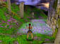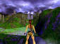 Nun gehst du langsam hinaus, da dieses alte Gemäuer offensichtlich nicht direkt von der stabilsten Sorte ist, und springst in die rechte, hintere Ecke, wo dich einige Amseln besuchen. Anschließend springst du auf den Mauerblock in der Ecke, wo du Fackeln findest. Dort springst du mit Griff zu der nächsten Schräge hoch, ziehst dich hinauf und springst rückwärts ab, um auf dem Steg zu landen (auch hier ist wieder mit Amseln zu rechnen). Dort begibst du dich auf die andere Seite, springst schießend (flacher Sprung mit Handlungstaste) in die nächste Öffnung und wieder zurück, um einen bösen Hund zu erlegen. Nach der Öffnung geht es vorsichtig nach links und du kletterst an der Wand hinauf in die Öffnung. Hier geht es mit Anlauf nach links und du mußt nun mit Griff an die bewachsene Wand springen und hinunter klettern, wo du dich seitlich herab läßt. Auch hier sehen wir wieder einen Block mit der entmutigenden Aufschrift, aber dort kommst du nicht weiter, falls du vorhin den Hebel nicht gedrückt hast (siehe schwieriger Weg). Statt dessen gehst du durch die Dornen, holst Fackeln und gehst zurück, um an der Wand wieder nach oben zu klettern. Dort springst du mit Griff zu dem kleinen, darüber liegenden Steg hoch und weiter in die andere Ecke. Hier drehst du dich um und springst mit Anlauf/Griff zum höchsten Steg, wo du Uzi-Munition findest. Jetzt geht es wieder hinunter in die Ecke und ab in die Bibliothek (siehe weiter unten). Erfolg: "Veni, Vidi, Tulit" = Vergiß das Medipack hinter Gittern nicht. Das müßte dieses Medipack sein. Schwieriger Weg: rutsche hinab, steige sofort rechts auf die zweite Ebene (dort liegt wie gesagt Munition, du verlierst aber mindestens 90% Gesundheit, wenn du sie nimmst, immerhin ist es MP-5-Futter) und weiter auf die dritte, wo du den Hebel vor dir drückst, um rechts ein Gitter zu öffnen, durch das du schnell läufst, damit Lara keine Löcher in ihren schönen Anzug kriegt. Nun holst du unten das große Medipack, das du vorhin schon gesehen hast, und gehst den Gang weiter, wo du über die dritte (also letzte) Schräge in die nächste Halle rutschst. Hier bleibst du in der Ecke stehen und erlegst zwei bis vier Möwen. Auf dem Holzsteg wirst du von herabfallenden Mauerstücken bombardiert. Springe also mit Griff auf den weißen Steinblock in der Ecke, wo du Fackeln findest, und dann vorsichtig hinunter zum Medipack beim Gitter, zu dem du schnell weiter läufst. Jetzt geht es ebenso vorsichtig zurück auf den hellen Steinblock in der Ecke, von dem aus du mit Griff zum darüber liegenden Steg hochspringst und dich hochziehst (des geht auch über die kleine Schräge, dann mußt du aber rückwärts abspringen). Nun geht es um die Ecke weiter (du siehst dabei einen Hebel) zur nächsten, grünen Öffnung, in die du springst und schnell wieder zurück (flacher Sprung in den höheren Bereich der Öffnung). Jetzt kannst du bequem den Hund erledigen. In der nächsten Halle (Vorsicht Steinbrocken!) kletterst du links an den Weinranken hinauf. Du kannst nun, wie beim leichten Weg beschrieben, direkt in die Bibliothek marschieren, hast dann aber das erste Geheimnis sowie einige andere Wertsachen verpaßt. Und ab jetzt wird es schwierig! Springe hinter die Hundestatue und weiter in die Ecke mit dem Hebel (drücken). Nun kehrst du zurück zu der Weinranke von vorhin und kletterst durch die Öffnung in den nächsten „Gang“. Hier springst du mit Anlauf nach links, steigst einen Block höher und springst von der Wand aus mit Griff an die Weinranke, wo du hinab steigst und dich seitlich neben den Dornen fallen läßt. Nun gehst du durch die Dornen, holst auf der anderen Seite Fackeln, und kehrst zurück zu der aufmunternden Inschrift („Laß alle Hoffnung fahren!“). Steige hinauf und betrachte dir die Lage: wenn du unten in der Grube bist, um das kleine Medipack zu holen, kommt von oben eine Dornenwand und du mußt dich schnell links hochziehen. Da du dabei mindestens 50% Gesundheit verlierst, würde ich es liegen lassen und gleich (flach) nach links in die Öffnung springen (wie gesagt, das ist der Weg zu Geheimnis 1, es lohnt sich also!). Über die zweite Grube springt du mit Anlauf und genau in der Mitte. Die dritte Grube enthält Munition und funktioniert wie die erste, allerdings gibt es hier einen Trick: springe zwei Schritte vor der Kante mit einem flachen Sprung zu der Munition und nimm sie schnell auf, dann ziehst du dich auf die Mauer vor dir hoch. Von dort kannst du zur vierten Grube springen. Hier liegt links oben zweimal Munition, die auch nur mit massivem Einsatz von Medipacks zu holen ist. Oder du springst mit Anlauf dorthin, nimmst eine Schachtel und läufst auf den Boden, bevor die Dornen sich senken, wo du kriechend den Ausgang dieses Alptraums erreichst. Dort läßt du dich auf die zweite Ebene hinab (Kriechen-Taste drücken), findest zweimal Harpunen sowie einen Hebel (drücken) und unten endlich Geheimnis 1. Begib dich nun wieder hinauf und gehe durch die Tür. Anschließend geht es auf dem bekannten Weg zur Weinranke und nach oben, wo du wie beim leichten Weg in die Bibliothek marschierst und kurz vorher die Uzi-Munition nicht vergißt. Fazit: Der schwere Weg hat mir zusätzlich ein großes Medipack gebracht sowie 60 Schuß MP5 und vier Schuß mit dem Gewehr, allerdings fast ein ganzes Medipack gekostet. Gefunden von