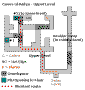 In diesem Level gibt es einen kurzen und einen langen, gefährlichen Weg. Der gefährliche Weg bringt zusätzlich nur ein kleines Medipack sowie etwas Gewehrmunition ein, außerdem sind keine Geheimnisse versteckt. SG0 Den kurzen Weg natürlich nur nehmen, wenn man es eilig hat, oder die Erfolge schon hat, oder nicht will. Kurzer Weg: gehe nach links und folge dem Gang bis zur Kreuzung, an der du links abbiegst und dich immer links hältst, bis du eine Grube findest, in die du dich bis ganz unten (zwei mal) herabläßt und Fackeln findest. Klettere wieder nach oben und folge dem Gang weiter, also nach links, wo gleich rechts um die Ecke ein Kriechtunnel ist, in dem du nach links kriechst und dann gleich in den nächsten Kriechtunnel direkt vor dir. Hier kriechst du nach rechts zu Uzi-Munition, dann geradeaus rückwärts und läßt dich vorsichtig in die Grube hinab. Dort folgst du dem Gang bis zum nächsten Kriechtunnel, in dem du nach links abbiegst und dann immer an der rechten Wand entlang marschierst, bis du in einer Kammer mit dem grünen Kristall 1 landest... (siehe unten) Langer Weg: Oberste Ebene - Upper Level (bei Stella) Hierbei ist es äußerst ratsam, sich eine Skizze (bei Stella) anzufertigen, denn du mußt wie beim kurzen Weg die Fackeln und die Uzi-Munition holen. Dann darfst du dich aber nicht in die Grube bei der Uzi-Munition herablassen, sondern mußt wieder zum Beginn des Levels zurückkehren, was fast nur mit Karte funktioniert. Und du mußt noch die Schlange 1 erlegen, das ist auf der Karte von Stella das C = Cobra. Dann geht es vom Startpunkt aus (Enter Level) in den anderen Gang, wo du nach etwas kriechen eine große Schräge findest. Nun kommt der gefährliche Teil: laufe hinunter und spurte nach links in den Gang. Hier gehst du rückwärts die Schräge hinauf und läufst beim Ertönen des Kugelgeräuschs in die erste Nische links. Zweite Ebene - Second Level (bei Stella) Dann geht es die Schräge hinauf und durch einen Kriechgang. Links ist eine Sackgasse mit Schlange 2. Zurück und nach dem Kriechgang rechts gehen (schau einfach auf die Karte), wo du im ersten Gang rechts Munition findest und im anderen Gang das Medipack sowie die Schlange 3. Hier findest du (in der Nähe) auch einen Block (movable block), den du einmal schiebst und so in dem Gang rechts schließlich eine Grube erreichst, in die du dich herabläßt. Dritte Ebene - Third Level (bei Stella) Du kommst auf der Karte von Stella links oben bei dem Punkt: Pit # 3 heraus. Navigiere jetzt mittels Stellas Karte zu Schlange 4 und dann nach rechts oben zu dem Punkt Pit # 4, das ist die Kammer mit dem grünen Kristall 1... Karte des Labyrinths (klicken zum vergrößern) Es gibt die Karte in groß auch in der ausdruckbaren Version. Unterste Ebene - Lowest Level (bei Stella) Kammer mit grünem Kristall 1: SG1 nimm die Fackeln und springe über die Grube, um den Kristall zu ergattern. Werfe dann von der Wand aus eine frische Fackel hinunter (zweimal Komma) und betrachte dir die Lage. Unten liegen vier Schlangen in den Ecken. Lasse dich hinunter und gehe sofort einen Schritt zurück in die Mitte. Von hier aus kannst du die ersten vier Tierchen erlegen. Nachdem du mit einer weiteren Fackel die Lage erkundet hast, springst du von der Wand her in die Rollbahn der Kugel Richtung Ausgang und gleich wieder zurück an die Wand. Vor dem Ausgang dösen übrigens 6 weitere Schlangen. SG2 Gehe und krieche bis zur nächsten Rampe mit Kristall 2 und Medipack davor. Ziehe schwere Waffen und rutsche hinunter... SG3 Erfolg: "Voll Krishna" = Besiege Tony mit dem Granatwerfer ("Neues Spiel"). Es steht hier zwar "Neues Spiel", aber man kann tatsächlich hinten den Granatwerfer holen, und Tony damit umhauen! Auf der Plattform steht ein Wahnsinniger (Tony), der Feuer spendet. Trick: Springe zu ihm und schieße fleißig, achte dabei darauf, immer zwischen seinen Armen zu stehen, dann treffen dich seine Kugeln nicht. SG4 Sammle dann die Munition auf den anderen Plattformen sowie den Granatwerfer und zuletzt in der Mitte den Infada-Stein... SG5 Toller spitzenmäßiger Hinweis:
