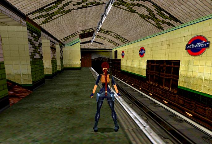 Die neuen TR 3 Remastered Erfolge, die man hier (in diesem Level) kriegen kann, stehen nun in der folgenden Lösung, die restlichen Erfolge stehen hier. F5 drücken zum Aktualisieren dieser Seite, die letzte Aktualisierung (Datum) steht rechts unten. Zeitspiel: Speedrun (Level möglichst schnell abschließen) Tomb Raider Remastered Steuerung. Worum geht's? Aldwych ist eine Station der Londoner U-Bahn, die 1994 geschlossen wurde. Du bist also in einer Art Geisterbahnhof, wo sich passenderweise der Club der Verdammten aufhält. Bis du die aber entdeckt hast, gibt es wie immer einiges zu tun, also ran... Erfolg: "Kopf-an-Kopf-Rennen" = Lauf zum Wartungsraum zurück, bevor es der Verdammte tut. Es gibt hier nur einen Erfolg, nämlich wenn man die linke Rolltreppe hinunter geht, siehe weiter unten... Zu Beginn des Levels rutschst du einige Rampen hinab und greifst sofort die nächste Kante, an der du dich hochziehst und Munition* findest. SG0 Lasse dich dann ins Wasser hinab, steige heraus und folge dem Weg. Rechts ist hinter einer Tür/Gitter (jetzt einschießen!) ein grüner Kristall 1, den du aber erst später holst. Betrete mit gezogenen Waffen die Schalterhalle und erlege einen Bösewicht (mit Medipack). In der Halle kletterst du auf das linke der vier Fahrkartenhäuschen, ziehst dich nach oben in die Öffnung und dort den schwarzen Block rechts von dir (mit den weißen Rohren) einmal heraus. In diesem Raum findest du an der anderen Wand an drei Stellen Munition und einen Bösewicht*, der in der anderen Ecke lauert. Klettere dann durch das Bodenloch in der Ecke hinab zu dem grünen Kristall und gehe wieder in die Schalterhalle. Steige wieder auf das linke Häuschen und diesmal an dem schwarzen Block mit den Rohren bis ganz oben, wo du dich auf der anderen Seite zweimal vorsichtig in das Häuschen hinabläßt. Hier findest du den Wartungsschlüssel, ein Medipack und einen Schalter, der dich wieder in die Halle bringt. Rechte Rolltreppe(n) Hier gibt es zwei Ausgänge mit Rolltreppen (links und rechts). Benutze den rechten Ausgang und gehe hinunter. Springe dort mit Anlauf über den Abgrund, ziehe sofort die Waffen und erlege in der Halle einen Hund mit Herrchen. Öffne am anderen Ende des Bahnsteigs mit dem Schlüssel die Tür, sammle dahinter Munition und ein Medipack und drücke den Schalter. Wieder draußen findest du am Anfang des Bahnsteigs einen "alten Penny" (Münze). Kehre zu dem Erdloch zurück, über das du zum Bahnsteig gesprungen bist und hänge dich an die braune Schräge über den Schienen (in Richtung Gleis). Lasse los und laufe hurtig (ein Zug kommt!) geradeaus und nach rechts in den Seitentunnel, wo du sofort die Waffen ziehst und zwei Schläger erlegst. Kistenraum SG1 In dem dortigen Kistenraum findest du am Boden ein Medipack und hinter einer Kiste weiter oben einen grünen Kristall 2. Klettere von dem Kristall wieder zurück auf die Kiste, erlege einen Hund und springe mit Anlauf nach links auf den Stapel an der anderen Wand. Hier stellst du dich mitten auf die Kiste neben dem schrägen Brett, und zwar mit Blick auf den Holzpfeiler mit der Kletterwand. Mache einen Seitwärtssalto auf das schräge Brett, springe sofort nach vorn an die Kletterwand und halte dich fest (etwas schwierig, aber es geht). Klettere bis fast ganz oben und drücke "Alt" = Sprung, um auf dem Vorsprung hinter dir zu landen. Drehe dich um und springe schießend auf der Stelle, um einen Schurken anzulocken und zu erlegen. Er hat ein Medipack dabei. Klettere dann auf den Block an der Wand, das ist Punkt X.