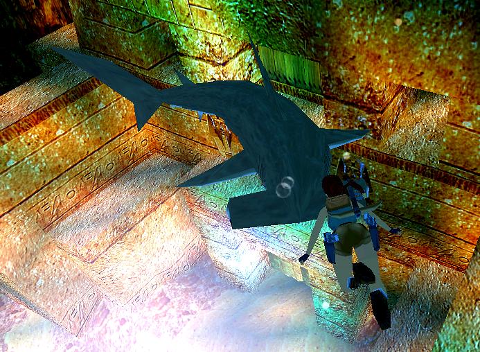 Die neuen TR 4 Remastered Erfolge, die man hier (in diesem Level) kriegen kann, stehen nun in der folgenden Lösung, die restlichen Erfolge stehen hier. Tomb Raider Remastered Steuerung. Worum geht’s? Ein an sich unproblematisches Level. Du setzt vier Käfer an der Pyramide ein, um den mechanischen Skarabäus zu bekommen. Erwähnenswert ist allerdings, daß du den vierten Käfer aus dem nächsten Level holst, und daß du auch einen zerbrochenen Käfer brauchst, um zum Aufziehschlüssel zu kommen. Siehe auch Pistole mit Laser-Trick (geht in der Remastered Version nicht!) und Skelett ohne Kopf-Trick in Level 17. Erfolg: "Jasons Lehrling" = Ertränke fünf königliche Wächterskelette im Wasser. Das sind die, die eine Krone (Turban, Duschhaube...) aufhaben, oder? Und davon muß man 5 mit der Shotgun in ein Wasserbecken schießen. Drei kommen hier, die anderen zwei im nächsten Level. Es gibt da bei den Erfolgen übrigens keinen Zähler dafür! Tauche geradewegs nach oben zu der Öffnung und gehe schnell links an Land. SG0 Von hier aus erlegst du den prächtigen Hammerhai, den du eventuell ein paar mal anlocken mußt (du kannst ihn auch verschonen und im folgenden einfach an ihm vorbei tauchen). Wenn du dort in den Gang kriechst, kommst du wieder in den See bei den Küstenruinen, also hier bleiben! In dem versunkenen Tempel sind zwei kleine Öffnungen, in denen du an Land gehst und Pharos’ Knoten sowie die Säule einsetzt. Dadurch öffnet sich am Fuß des Tempels ein Eingang, in den du tauchst. Wenn du dort die Treppe hinauf gehst, erscheint das allseits beliebte Skelett. Laufe also zurück ins Wasser und erlege es von einem der feuchten Seitenstege aus mit dem Pistolen-Laser-Trick. Dann springst du oben in das Loch und tauchst in die Kammer, wo du rechts die quadratische Tür öffnest und dahinter an Land gehst. Du kannst auch nur so zum Spaß die anderen zwei quadratischen Unterwassertüren öffnen, das bringt dich aber nicht wirklich weiter. Hier gibt es bissige Ölsardinen... (klicken zum vergrößern) Im nächsten Raum erlegst du springend und schießend ein Vogelmonster, das von links kommt. Die Truhen (hinknien und zerschießen) enthalten alle Wertsachen (mehrmals greifen). Dann gehst du die Treppe gegenüber vom Eingang zu diesem Raum hinauf und erreichst ein Zimmer mit weiteren wertvollen Truhen. Guter Rat: gehe erst mal nicht die anderen zwei Treppen hinauf! Wenn du nun in die Halle mit der Pyramide gehst, erscheint (na was wohl?) ein Skelett. Laufe also sofort zurück in den Raum mit dem (ehemaligen) Vogelmonster von vorhin. Das dumme Skelett folgt dir nur bis zur Treppe und du kannst es enthaupten.