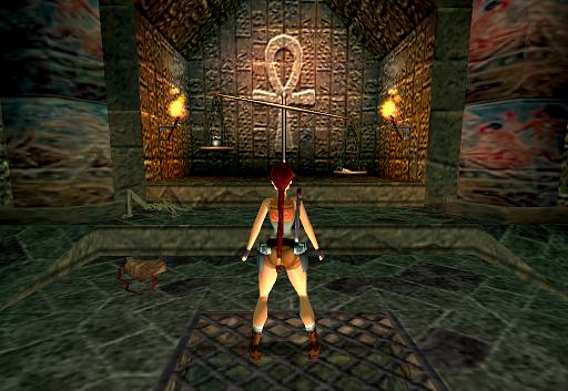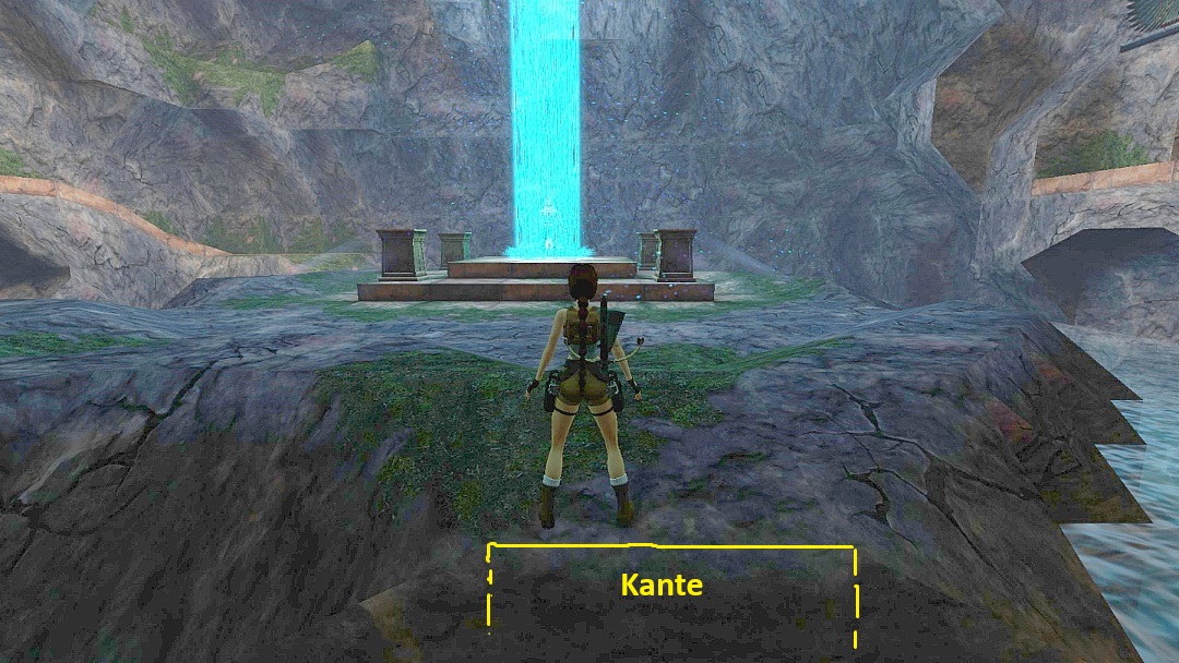 Hier hast du einen wunderschönen Ausblick über die Höhle (savegame.0) und springst mit Anlauf nach rechts bzw. links, wenn du zur Höhle blickst (also nach Norden), um sicher im Wasser zu landen. Dort kannst du auch an einer Stelle auf die mittlere Insel klettern. SG2 Bevor es nun weiter geht, solltest du vorsichtshalber ausprobieren, wie du zu der Rampe und der Tür links von der Statue (im Süden) kommst, da es nachher schnell gehen muß, denn jetzt neigt sich das „Spiel“ dem nicht gerade einfachen Ende zu und du wirst tonnenweise Medipacks brauchen! Originale Version: Lara kann hier übrigens aufgrund eines Programmfehlers keine Fackeln benutzen oder das Fernglas mit Beleuchtung. Gefunden von larafan: im letzten kampf mit seth, da funktionieren meine fackeln erst nachdem seth aktiv ist. du schreibst deine fackeln funktionieren überhaupt nicht. larafan