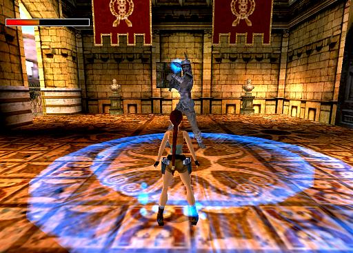 Die neuen TR 5 Remastered Erfolge, die man hier (in diesem Level) kriegen kann, stehen nun in der folgenden Lösung, die restlichen Erfolge stehen hier. Tomb Raider Remastered Steuerung. Worum geht’s? Arbeite dich vor bis zu einem Seil, mit dem du dir Zugang zum Kolosseum verschaffst und schließlich den Stein des Philosophen findest. Hinweis: dieses Level ist identisch mit der TR5-Demo im Download-Bereich. Erfolg: "Lang lebe der König!" = Besiege alle Löwen mit Uzis. Zunächst mußt du die Uzis erst noch holen, und zweitens reicht die Munition dann gerade noch so für die Löwen. Also darfst du keine Uzi-Munition für die Soldaten verschwenden, und du darfst aber auch nur mit Uzis auf die Löwen schießen, mit nichts anderem! Und kurz vor Schluß kommt nochmal ein Löwe, alle anderen sind ja kaum zu übersehen, und kommen noch vor der Halle mit dem Seil. SG0 Gehe geradeaus weiter, bis du rechts in der Wand einen Block mit einem Metallring findest und zweimal schiebst. In dieser Kammer findest du Geheimnis 1 (goldene Rose). Wieder zurück im Gang gehst du weiter und in die Gasse. Hier zeigt dir die Kamera, daß der Boden unter dir nicht besonders stabil ist. Laufe daraufhin sofort weiter und springe über die Lücke im Boden in den nächsten Raum. Hier mußt du allerdings erst noch den Ausgang öffnen. Hänge dich bei der Lava an die Kante und hangle um die Ecke, um dich in die Nische zu ziehen. Auf der anderen Seite kannst du dich herablassen und einen Schalter drücken. Jetzt ist die Tür offen und du kannst so in den Keller hinab rutschen und dort einen Löwen erlegen (springe schießend immer rückwärts auf die Rutsche zurück). Drücke auch hier den Schalter und drehe dich sofort um, da sich ein zweiter Löwe anpirscht. Im nächsten Raum steigst du die Leiter hinauf und holst oben auf der kleinen Säule ein Edelstein-Stück. Wenn du den Raum verläßt, kommt von links ein Gladiator, dort findest du in dem kurzen Gang ein Medipack. Gehe nun die Rampe hinauf, wehre einen zweiten Gladiator ab und drücke links in dem Gang einen Schalter, vor dem Munition liegt. Nun geht es die nächste Rampe hinauf und schließlich vorsichtig die letzte. Dort warten ein Löwe und ein Gladiator auf dich und du findest in ihrer Wohnung am Ende ein Medipack und die Uzis (sehr schön!). Halle mit Seil und Zeit-Aktion SG1 Nun geht es weiter in die große Halle, die verdächtig nach einer höchst komplizierten Aktion riecht. Sicher hast du links das Seil bemerkt. Lasse dich auf den Boden herab und gehe dorthin. Wenn du dreimal daran ziehst, erscheint auf der Brücke eine Säule, auf der anscheinend etwas wichtiges liegt, sie verschwindet aber nach kurzer Zeit wieder. Damit ist klar, was du zu tun hast. Ach ja, es geht eigentlich nur mit einer Methode: stelle dich vor das Seil, so daß du direkt zu der Säule auf der Brücke blickst. Dann ziehst du dreimal, läufst einen Schritt zurück, drehst dich leicht nach rechts, so daß du auf die Ecke der Plattform blickst, und läufst los. Vor der Kante springst du ab, um auf dem kurzen Steg unter der Brücke zu landen. Hier läufst du gleich weiter und springst auf den nächsten Block, von dem du an der linken, hinteren Ecke mit Anlauf/Griff auf den zu der Brücke zeigenden Vorsprung springst. Von hier geht es dann wiederum mit Anlauf/Griff zur Brücke, die du natürlich rechtzeitig (hat bei mir eine Stunde gedauert) erreichst und das zweite Edelstein-Stück aufnimmst savegame.5. SG2 Anmerkung: