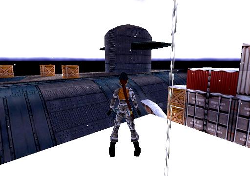 SG6 Hier beginnt nun also der zweite Streich aus Laras Jugend. Nachdem du in einem Gang gelandet bist, folgst du ihm bis unten zu einer großen, aber gefährlichen Halle. Hier hat es der Greifarm des Krans auf dich abgesehen, vor dem du nur sicher bist, wenn du an der Wand stehst. Laufe also geradewegs zur gegenüberliegenden Wand, wo du in einem kleinen, grauen Schrank (Handlungstaste) einen Silber-Schlüssel findest. Damit geht es wieder zurück zum Eingang der Halle und vorher nach rechts in die Ecke, wo du eine verschlossene Tür findest und aufsperrst. Dahinter kommst du zu einem Gang mit Fenster und zwei Wachen, die du erlegst. Einer von ihnen verliert dabei eine Schlüssel-Karte und in der Wachstube liegen im Schrank zwei Uzis. Jetzt geht es wieder hinunter in die Halle. Links vom Schrank mit dem Silber-Schlüssel von vorhin kannst du nun mit der Karte die Tür öffnen. Dahinter lauert ein Hund und du findest zwei kleine Gitter an der Wand. Eins davon hängt leicht schief. Springe hoch und schieße es ein, um dahinter Geheimnis 1 (Rose) zu holen. Jetzt kehrst du in die Halle zurück und öffnest mit der Karte die Tür rechts vom Schrank, um nach oben zu gehen und dort neben dem Geländer mit Anlauf nach rechts auf die graue Kiste zu springen, von der es ebenso und ohne Pause (der böse Kran!) auf die nächste graue Kiste geht. Hier springst du hinauf auf die Holzkiste und mit Anlauf weiter nach rechts auf den nächsten Stapel, wo du auf die obere Kiste springst und mit Anlauf/Griff den anderen Vorsprung an der Wand erreichst savegame.4. SG7 Gehe dort weiter, öffne mit dem Schalter die Tür und betrete den Kontrollraum. Anschließend durchsuchst du die Schränke und öffnest mit dem Schalter den Ausgang des Raums und springst wieder wie vorhin auf die graue Kiste und weiter auf den mittleren Stapel. Hier springst du in der anderen Ecke mit Anlauf auf die Kisten rechts von dem Tor, das du gerade heraus gerissen hast, und findest oben ein Medipack. Lasse dich dann wieder herab, steige beim Eingang der Halle auf die kleine Holzkiste und weiter bis ganz oben. Von dort springst du mit Anlauf/Griff zu den Kisten in der Ecke und mit Griff weiter hinauf zum nächsten Stapel, auf dem Uzi-Magazine liegen. Nach der Kran-Halle... Jetzt geht es hinunter und durch das Tor, daß du vorhin heraus gerissen hast. Von hinten kommen zwei Wachen. Dann geht es weiter und hinten links durch den Gang ins Freie. SG8 Dort steigst du auf die Kiste auf dem Waggon und weiter auf die am Kran. Von hier springst du mit Anlauf auf den niedrigeren, grauen Kisten-Stapel in der Ecke (nicht auf die kleine, braune Holzkiste, schwierig, aber es geht, du mußt absolut exakt die Ecke des Stapels treffen), wo du oben Geheimnis 2 (Rose) findest. Begib dich wieder nach unten und öffne dort die Tür. Dahinter lauert eine Wache, die einen Silber-Schlüssel verliert, und du bemerkst, daß bei dem (vermutlich) Transformator eine der gelben Sicherungen fehlt. Nun geht es wieder zurück in das große Gebäude und bei den Schienen den anderen Gang hinauf, wo du am Ende die Tür aufsperrst und hinausgehst. Nachdem du die interessante Unterhaltung belauscht hast, gehst du nach rechts und springst mit Anlauf/Griff zu der Plattform in der Ecke. Genauso geht es weiter in Richtung U-Boot, wo du Munition und das Laser-Zielgerät findest. Anschließend läßt du dich dort auf den Boden herab und öffnest mit der Schlüsselkarte das graue Tor.