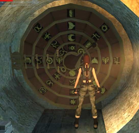 Hier gehst du weiter und nach links zu dem blinkenden Schalter, der einen Lift aktiviert. Jetzt begibst du dich wieder auf die hölzerne Plattform, und hinunter auf den steinernen Vorsprung, von dem aus du auf diesen Lift springst. Dort siehst du ein großes Rad mit Symbolen. Gehe weiter um die Ecke, wo du vier Hebel findest. Den ersten läßt du, und die anderen drei drückst du nach unten. Dann geht es zu dem Symbolrad, wo du nun mit dem Hebel den äußeren Kreis bewegen kannst, bis das Symbol, das aussieht wie ein Halbmond, in der Markierung liegt. Danach fixierst du den äußeren Kreis mit dem ersten der vier Hebel um die Ecke, und drückst den zweiten Hebel nach oben. Jetzt kannst du an dem Symbolrad auf dem zweiten Kreis das Symbol einstellen, daß du nach dieser Beschreibung als erstes gefunden hast. Stelle nun noch die beiden anderen Symbole ein, und dadurch öffnet sich oben bei dem Schalter, mit dem du den Lift betätigt hast, der große Kreis im Boden, durch den du ins nächste Level kommst... SG-C Statistik: Man kann jederzeit mit der Zurück-Taste (Back Button) am Gamepad ins Hauptmenü des Spiels gehen, da sieht man (unter anderem) links oben den gesammelten Euro-Betrag, und dann auf "Statistiken" weiter unten gehen, dort sieht man unter anderem die Gesundheitsgegenstände, Schokoriegel und Fundstücke mit der tatsächlich gefundenen und maximal möglichen Anzahl. Beispiel. Statistik hier: Gesundheit: 0, Schoko: 0, Fundstücke: 4