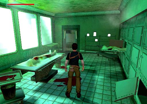 Die neuen TR 6 Remastered Erfolge, die man hier (in diesem Level) kriegen kann, stehen nun in der folgenden Lösung, die restlichen Erfolge stehen hier. Tomb Raider Remastered Steuerung. Erfolg: "Darwin-Preis" = Finde die albernste Methode für das eigene Ableben. Einfach hier ins giftige Wasser plumpsen, und fertig. Falls du die anderen zwei auch hast. Ach ja, Kurtis kann nicht schwimmen, und das Wasser ist ja sowieso giftig, oder? SG5 Gehe durch die nächste Tür, und nach rechts zu dem giftigen Wasser, wo du an dem Stromkabel zur anderen Seite hangelst (du kannst auch hinüber springen). Hier liegt Munition. Dann geht es wieder zurück. In dem Büro kannst du eine Nummer eingeben, aber die müssen wir erst noch finden. Gehe durch die nächste Tür, und nach rechts. Hier gibt es eine bestimmte, verschlossene Zelle, aber wenn du dich vor die Tür stellst, kann Kurtis Dank seiner übernatürlichen Fähigkeiten die passende Nummer finden: 17068. Hinweis: die anderen Zellen sind leer, aber gehe nicht hinein, sonst lockst du zwei Kranke an! Jetzt geht es zurück zum Büro, und du gibst die Nummer ein. Gehe nun wieder zu der Zelle, wo du die Nummer gesehen hast, und öffne sie. Drinnen nimmst du die Munition, die Zugangskarte, und Schokolade, aber Achtung, von draußen kommt ein Kranker. Anschließend gehst du hinaus (man könnte jetzt auch nebenan in die Gummizelle gehen), und um die Ecke, SG6 wo du jetzt die große Tür öffnen kannst. In dem Zimmer rechts von dem roten Licht findest du Munition. Gehe aus diesem Zimmer wieder hinaus, und immer nach links, bis du eine Doppeltür öffnen kannst. Dahinter warten zwei Kranke, und du gehst nach rechts und in den Operationssaal... WWW - wirklich wahnsinnig wichtig! Gehe wie gesagt in keine anderen Zellen oder Bereiche, da gibt es sonst nichts, nur böse Buben, und das sind die mit den vielen großen Krallen, oder was das auch immer sein soll, und bei denen muß man ziemlich viel Munition verbraten! Du kannst hier auch einfach schnell alles erledigen, und den Typen davonlaufen, letztendlich bist du dann ja beim letzten Showdown, und sonst mußt du hier nichts mehr machen. Auch wenn du noch dort hinein kriechst, wo die Wache war, können sie dir nicht folgen. Wenn du dir allerdings den wirklich sehenswerten Operationssaal in Ruhe anschauen willst, mußt du die zwei Typen beseitigen. Wenn du bisher alle Muni gesammelt hast, und damit sparsam warst, sollte das aber sowie der Rest absolut locker klappen! Schock: hier wartet der Höllenhund! Aber er läuft hinaus, und verspeist erst mal die Wache. SG7 Erlege noch schnell einen Kranken, und gehe dann wieder hinaus. Krieche dort, wo die Wache war, unter der Öffnung hindurch, und gehe die Wendeltreppe hinunter. Dort gehst du einfach weiter, und kommst in eine riesige Halle. Gehe weiter, bis du eine Leiter findest, die du hinauf steigst. Jetzt gehst du zu der Kammer in der Mitte, und ziehst dich auf diese Kammer hoch. Springe von dort zu dem Steg hinüber (rechts), und gehe diesen bis zum Ende, wo du dich in eine Öffnung ziehen kannst. Krieche weiter (es gibt nur einen Weg), und lasse dich hinab, bis du eine Leiter hinauf klettern kannst. Hier nimmst du die Zugangskarte, und die Schokolade, und öffnest dann mit dem Schalter die Tür. Gehe hinaus und links um die Ecke, um mit der Karte eine weitere Tür zu öffnen. SG8 Hinweis: diese Tür hätte man anscheinend auch gleich nach dem Treffen mit dem Höllenhund öffnen können, aber durch diesen Umweg haben wir immerhin eine Karte und Schokolade gefunden. Erfolg: "Schokosammlung" = Hol dir alle Schokoladen in einem einzigen Durchgang und iss keine davon. Das war's, Ende, gibt nix mehr! Noch ein Hinweis: die Anzeige bei gezogener Waffe, z.B. 12/20 zeigt an, daß du noch 12 Magazine mit aktuell 20 Schuß im Magazin hast. Ein volles Magazin hat 25 Schuß.